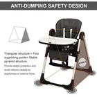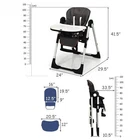 Freestanding available after folding Silent built-in real wheels for easily move 5-point safety restraint system ensures baby's safe Foldable design for space saving no installation required Detachable double tray for easily clean and maintain top tray is dishwasher safe All the corners of highchair are smooth without sharp edges to avoid extra injury 7 adjustable height positions 5 positions recline adjustable footrest and 3 position adjustable trays