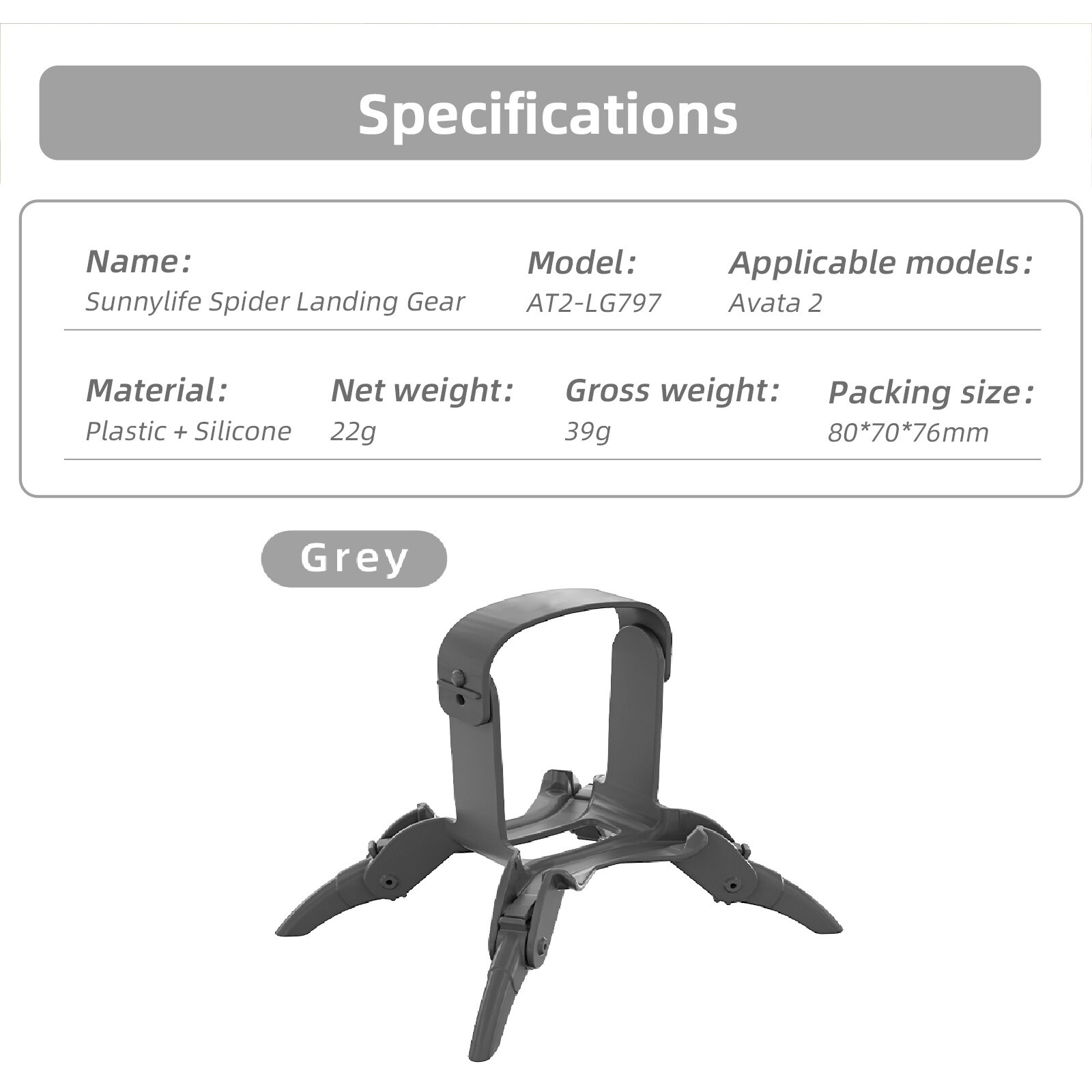 SAFE & SECURE SHOPPING 100% SATISFACTION GUARANTEED FAST SHIPPING Store Categories Store Categories You may also like Foldable Landing Gear Heighten Holder Spider Bracket Kit For DJI Avata 2 Drone, Product Description Features: Effective height increase, Greatly increase the spacing between the fuselage and the ground, effectively prevent ground debris from damaging or dirtying the fuselage, sensors, etc. during takeoff and landing. Three-speed height adjustable, Ratchet structure, adjustable three height increase heights to meet your different needs. Doesn't affect the turtle turning over, Adjust the kickstand to the third gear (25mm-41mm height increase), for Avata 2 can autonomously complete the turtle turn over. Precise molding, customized, does not affect the vision system and infrared sensor at the bottom of the body in any way. External eight structure tripod, stable landing and take-off again upgraded, give you a steady sense of security. Foldable tripod, portable storage, easy to travel. Specifications: Name: Folding Booster Stand Material: Plastic + Silicone Color: Gray Package Size: 80*70*76mm Suitable for: For DJI Avata 2 Package include: 1*Landing Gear Shipping Returns Contact Us Payment Shipping 1. Items sent from US warehouse. 2.Receiving time = Processing time + Shipping time 3. Processing Time: Around 1-2 business Days 4. Shipping Time: 3-5 business day it may have a little delay during some holiday (such as Christmas),any problem ,please feel free to contact Returns 1. 30 days warranty from the purchased date. Please contact us via email before returning the defective item. 2.Our warranty does not extended to any product that are physically damaged or that are not under normal operating conditions as result of misuse or improper installation on the buyer/user's part. 3.Return items should include the original packaging and all accessories. buyers MUST contact us for the returning address. 4.In all cases, buyers pay shipping fees at their own cost to return products for exchange or refund. We will be responsible for the postage of replacements. Refund will be made upon receipt of the returned item. Contact Us Pls contact us if you have any problems,we will try our best to solve for you Payment We accept all verified payment from eBay. Copyright © 2022 Tongtool