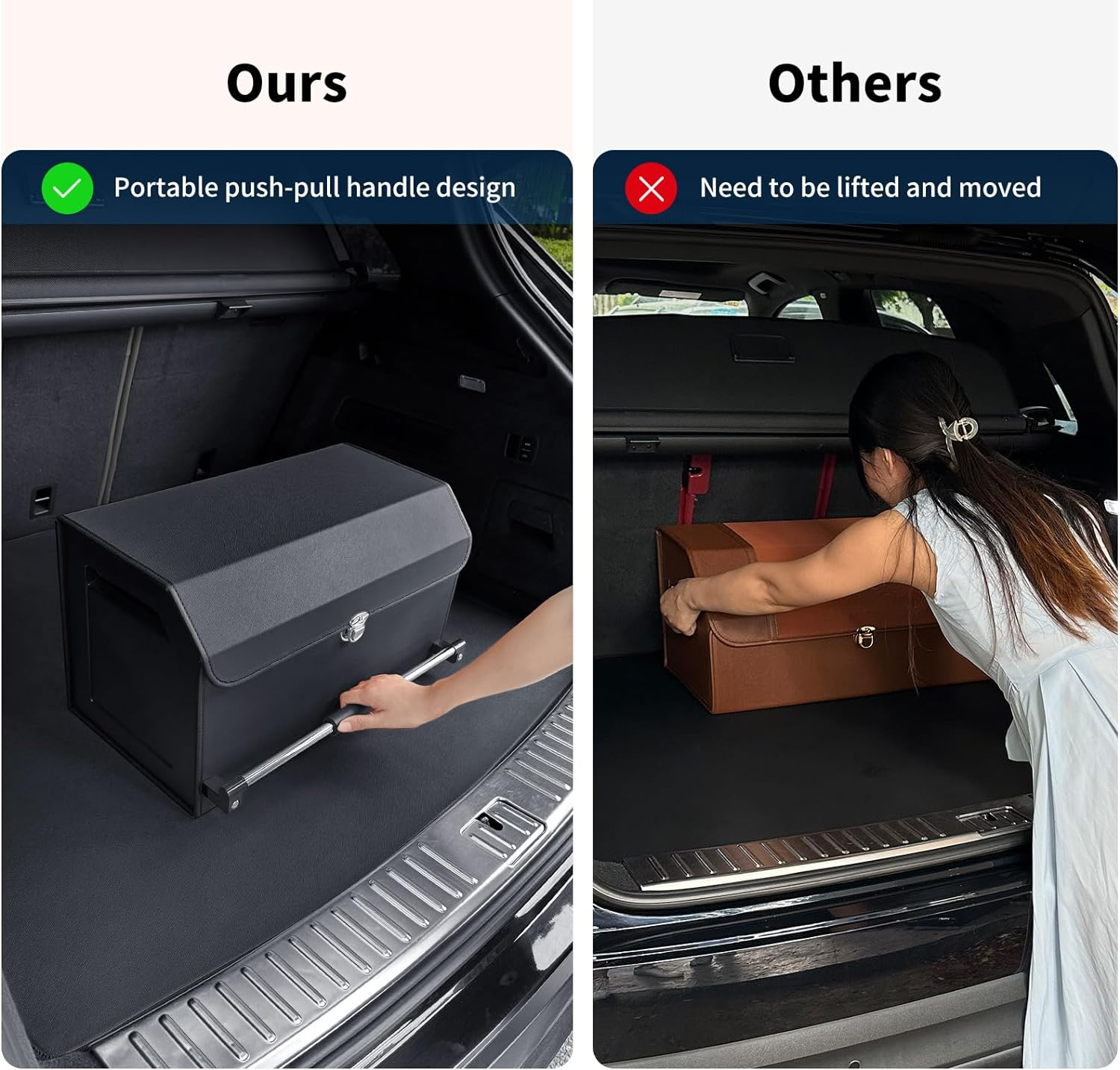 Store New Arrivals Add to Favorite View Feedback Contact XCF Trunk Organizer for SUV, Foldable Leather Car Trunk Organizer with Lid and Sturdy Handle, Collapsible Adjustable Storage Compartment for Men/Women (11.4 X 20.5 X 12.2, Black) Description Item model number Car Trunk Organizer 1-Large-Black Style American Capacity 45 Liters Number of Items 1 Country of Origin China Batteries Required? No Finish Unfinished Number of Compartments 2 Unit Count 1.0 Count Product Dimensions 11.4"D x 27"W x 12.2"H Material Leather, Acrylonitrile Butadiene Styrene Maximum Weight Recommendation 2.5 Kilograms Finish Type Unfinished Specific Uses For Product Automobiles Included Components Trunk Organizer Item Package Quantity 1 Handle/Lever Placement Horizontal Number Of Pieces 1 Item Weight 4.4 pounds Special Features Durable Special Feature Durable Part Number Car Trunk Organizer 1-Large-Black Mounting Type Insert Mount Item Weight 2 Kilograms Color Black Shape Rectangular Size 11.4 x 20.5 x 12.2 Faux Leather 【Sturdiness】This trunk organizer for car features a robust construction that ensures long-lasting performance. Its solid base provides stability can withstand wear and tear of vehicle use. The sturdy ABS frames and fixed elastic straps keep your items securely in place, preventing them from shifting or getting damaged while on the move. 【Leather Trunk Organizer for Suv】Made from innovative leather material, it offers a premium and textured look. Easy to clean, water-resistant, and with no peculiar smell, it ensures a hassle-free experience. 【Car organizers and Storage】 This car storage organizer offers ample storage space and a movable divider accommodate various storage needs to keep your belongings organized and easily accessible, allowing you to store a wide range of items such as groceries, picnics, pet supplies, cleaning supplies, sports gear, emergency tools. 【Collapsible and Portable】Handle Design, Pull out when in use, push to restore position after use, convenient and beautiful. It has metal button to be more firm. When not in use, it can be easily assembled & stored and suv / car trunk organizer will occupy less space. 【Large Capacity】The trunk organizer hard measures 11.42"D x 20.47"W x 12.20"H and has a large capacity. We attach great importance to customer experience, if you have any questions, please contact us in time, we will reply you, we are happy to serve you. Leather Car Organizer and Trunk Storage. This sleek and stylish organizer is designed to not only enhance the look of your vehicle but also transform the way you store and access your essentials. Key Features: 🚗 Easy Setup: Setting up the car organizer is a breeze. It comes with all necessary parts and a simple structure, so you can start using it right away. Refer to the included manual for detailed instructions. 🚗 Perfect Storage Space: Designed specifically for SUV, Sedan, this organizer offers dedicated storage space for groceries, emergency supplies, pet accessories, and more. Keep your essentials neatly organized and within easy reach. Product Details: For SUV 📦 Package Includes: One pack of SUV storage organizer trunk. 🌐 Material: Crafted from high-quality leather for a premium look and feel. 📏 Size: 11.4" Diameter x 20.5" Width x 12.2" Height Upgrade your car interior with our Leather Car Organizer and experience the unparalleled convenience it brings to your daily life. Don't settle for a cluttered car – order your Car Trunk Organizer today and enjoy a tidier and more organized driving experience. ABOUT US We offer the best prices around on high quality products. Our E-store includes media such as books, movies, music and games while offering electronics, toys, sporting apparel, clothing, tools, general home, garden items and more. SHIPPING We are always working hard to ensure your package arrives as soon as possible. Please understand that some factors like weather, high postal traffic, and the performance of shipping companies are outside of our control. We offer free shipping to the lower 48 states and ship within 2 business days of payment, usually sooner. We do not accept P.O. Boxes. Please provide a physical address. For shipping outside of the continental USA, we only use eBay's Global Shipping Program.The item is shipped to KY and then sent to the rest of the world. International customers are responsible for all duties and taxes. Continue to check out in order to calculate costs for shipping the item to your country. Messages regarding eBay's Global Shipping Program MUST be directed at eBay EXCLUSIVELY. RETURNS We offer a 30-Day Return Policy on items which you are not completely satisfied with. You have the option for a full-refund or an exchange of the item. No returns are available on items shipped outside of the USA. PAYMENT We accept PayPal. CONTACT US This page content is yet to come Please ad us to your favorite seller and visit again later Thank You CUSTOMER SATISFACTION We try our very best to make sure every customer is completely satisfied. If there's a problem, message us! We're happy to help.