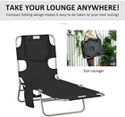 Free eBay listing template designed by dewiso.com Outsunny Folding Beach Lounge Chair with Face Hole and Arm Slots, 5-Level Adjustable Sun Lounger Tanning Chair with Pillow for Patio, Garden, Beach, Pool, Black FREE AND FAST SHIPPING! About this item Reclining & Face Hole: The adjustable backrest of our patio lounge chair allows you to choose from 5 reclining angles with a pillow for padding and holes for your head and arms to let you read as you lie face down. Outdoor Tanning Chair with Storage: Feel free to relax fully, knowing everything is in its proper place. Our outdoor foldable tanning chair has a pocket to keep your phone, book, or other items safe and organized Foldable Design: With the tri-fold design, this patio lounger is space-saving for storage in the garage and easy to travel with, fitting in the trunk of your car. Outdoor Lounge Chair: The outdoor-ready combination of powder-coated steel and tough Oxford fabric allows our beach lounge to endure water while still maintaining a 264 lbs. weight capacity. Outdoor Chaise Lounge Chair Info: Overall Dimensions: 72.8" W x 21.7" D x 11.4" H (Fully Reclined); Folded Dimension: 28.3" L x 21.7" W x 3.9" H. Weight Capacity: 264 lbs. Product We offer a 30-Day Return Policy on items which you are not completely satisfied with. You have the option for a full-refund or an exchange of the item. No returns are available on items shipped outside of the US . Shipping We offer Free Shipping to the US and ship within 2 business days of payment, usually sooner. We use UPS express shipping. That's why your products are usually delivered within 3 days . Contact We try our very best to make sure every customer is completely satisfied. If there's a problem , message us! We're happy to help. 24/7 live chat available.