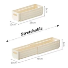 【& ORGANIZE】With a width of 3.9", a height of 3.1", and an adjustable length ranging from 11" to 18.6", our foldable organizers can be easily fitted into most drawers and cabinets, providing the ideal solution for keeping your items organized and your drawers tidy at all times. Great for separating and organizing most items in the kitchen, refrigerator and pantry. Small foods and snacks fit perfectly in these kitchen organizers. Use for individually packaged snack items for the kids. 【EASY TO INSTALL】 A simple one-click installation, no tools or glue needed. Just unfold it and pull plates snap into both side plates, and then insert the two boxes. Insert the buttons on both sides of the box for expanding. 【IDEAL STORAGE CHOICE】Invest in quality construction with our expandable storage bins. They have handles on each sides, easy to take out or put in. They're built to last and keep your home clutter-free for years to come. Create a tidy and organized home with our pantry organization and storage storage bins. Perfect for pantry organization, laundry room storage, and kitchen organization. 【DURABLE & EASY TO CLEAN】Made from high-quality plastix material, the adjustable bathroom kitchen drawer organizers environmentally friendly and more durable, without odor. Sturdy to withstand heavy and strong, not easily deformed while the smooth surface makes it easy to wipe clean with a damp cloth. Easy to clean, extremely friendly to users. 【VERSATILE APPLICATIONS】 These adjustable storage containers are perfect for organizing desks, drawers in your home or office, helping you neatly arrange clothing, cosmetics, books, office supplies, and more.