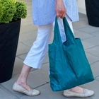 PROMOTES GREEN LIFESTYLE. Reduces trash from unwanted bags, helps protect the environment and wildlife. These reusable bags can be used again and again. FOLDABLE. The reusable bags can be folded into a tiny inner pocket that can conveniently fit in your purse. Great for taking with you anywhere you want. SET INCLUDES 2 BAGS: Large: 22 x 16.5 inches, 9 inch handles. Small: 14 x 15 inches, 8.5 inch handles. DURABLE: Lightweight yet very wear-resistant and does not rip easily. Made with nylon. Holds up to 44 lbs. Waterproof. USE: For carrying groceries, shopping, traveling and storage. Can also be used as a book bag or lunch bag.