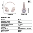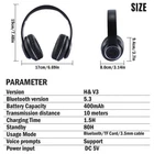 Foldable Noise Cancelling Headphones Wireless Bluetooth 5.3 Over-Ear Headphones Features: * Foldable Design: Headband Bluetooth Headset with foldable design, easier to put into a pocket, bag or other small storage space, can greatly reduce the occupied space. * Bluetooth 5.3 chip: The Over Ear Headset adopts Bluetooth 5.3 chip, faster and more stable connection, listening to songs and playing games more clearly. * Comfortable to The Ear: The Bluetooth Headset is made of soft protein leather, breathable and comfortable, even if you wear them for a long time, you won't feel booming head or discomfort. * High-Quality Sound Quality: Wireless Headset using acoustic cavity + digital enhancement technology, presenting surging three-dimensional sound, as in the concert scene. * Equipped with 3.5mm Audio Cable: When the Over Ear Wireless Headset is low on power or you want a more stable audio transmission, you can use the 3.5mm audio cable to connect the headset directly to audio devices (such as cell phones, computers, etc.) for wired transmission. Specifications: Bluetooth Version: V5.3 Transmission Distance: 10 meters Battery Capacity: 400 mAh Charging Time: about 1.5 hours Standby Time: 80 hours Mode of Use: bluetooth/card/wire insertion Power Input: DC 5V Color: Black/Creamy white Material: ABS Size: 18.5x18.5cm/7.28x7.28in Package Include 1 x Earphone 1 x USB cable 1 x Audio Cable Feedback Delivery details Terms of sales About us Contact us Feedback Contact us if you have any question, Give us a chance to serve you,No negative feedback, it will not solve the problem! Thanks! communication Please! Delivery details Fast Shipping fro m NJ-U S A Terms of sales About us Contact us Welcome ! Pls email us by clicking contact the buyer or ask a question.