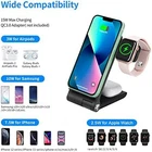 Foldable Wireless Charger, 3 in 1 Wireless Charging Station for iPhone 13/12/11/Pro/Max/XR/XS/XS Max/X/8/8 Plus, Apple Watch, Airpods 2/Pro, Samsung Galaxy Phone, Portable Wire Product Description Foldable Wireless Charger The folded size of the wireless charging station is only 5.82*3.54*0.78 in, lightweight, and portable to use at the home, office, or on trips. 3 in 1 design, only need one type C cable and one 18W adapter, the iPhone charging station can charge your phone, AirPods, and Apple Watch at the same time keeps your desk-top or nightstand clean and tidy(The adapter is not included). Safety Protection Equipped with highly efficient components, advanced chipset, and dual coil design for faster-charging speed(up to 15W) with total peace of mind. Fast Heat Dissipation The backside of this multifunction wireless charging stand is equipped with heat dissipation holes to protect it from overheating. Non-slip Silicone Pad The bottom of the fast wireless charger is equipped with a non-slip silicone pad to ensure that the device is not easily moved and slips when charging. The wireless phone charger is also equipped with a non-slip silicone pad to protect the phone from slipping and scratching. Multi-angle to Charge This wireless iPhone charger supports vertical or horizontal charging, or you can even lay your smartphone on the wireless charging pad. Package List 1 x 3 in 1 Wireless Charging Station 1 x USB Type C Cable 1 x User Manual