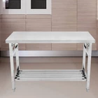 Folding 48" x 24" Stainless Steel Kitchen Prep Table Adjustable shelf Work Bench Product Description š§ Durable Stainless Steel Crafted from high-quality stainless steel for maximum durability and easy cleaning. š Space-Saving Design Folding feature allows for easy storage and efficient use of space in any kitchen. š Adjustable Shelf Includes an adjustable shelf to accommodate various kitchen tools and equipment. š ļø Easy Assembly Simple setup with clear instructions, making it convenient to start using right away. š Versatile Use Perfect for food prep, storage, or as an additional workspace in both home and professional kitchens. FOLDABLE TABLE LEGS: The table top and legs can be folded to ensure stability while adding a special storage design, allowing you to use it even in smaller spaces with confidence. After each use, simply fold and store to regain free space. MULTIPLE APPLICATION: The work table is a good choice to put it in your kitchen, restaurant, workshop,garage, bar, warehouse or any other commercial setting. The size of L 48*W 24*H 32 inches is ideal for commercial and industrial applications. ADJUSTABLE UNDERSHELF: The kitchen work table has two layers,you can adjust the bottom plate to different heights according to your requirements. It can offer you enough storage room for microwave oven,juicer or any other tools. HIGH QUALITY STAINLESS STEEL: Our kitchen work table is made of high quality stainless steel, anti-rust, and not easy to wear and tear. Easy to clean and sterilize, Using rag or paper you can easily clean it quickly. Metal prep station tables are superior to wood or glass. EASY ASSEMBLY: Don't worry about the installation, we have a custom installation manual that can help you assemble the stainless steel table in less than 30 minutes. Adjustable Shelf Two Height Options 500LB Bearing Capacity Adjustable Legs Payment Delivery details Terms of sales About us Contact us Payment We accept Payoneer only. All major credit cards are accepted through secure payment processor PayPal. Payment must be received within 7 business days of auction closing. If you have bought multiple items from me, you can send me one payment for all the items instead of paying for them individually. When you click the Pay Now button, eBay will automatically determine if there are other items you have won or purchased from me and will combine them for your review. NOTE: Import duties, taxes and chargers are not included in the item price or shipping charges. These charges are the buyer's responsibility. Please check with your country's customs office to determine what these additional costs will be prior to bidding buying. Delivery details 1. We will delivery out at the handing time when we receive the payment. 2. The delivery time is 3-5 business days to US by usually time.The parcel maybe delay 1-2day of the weekend.Due to the bad weather,Holidays,Hot Season ect.the parcel maybe delay,If you have any problems,mssage us,we will try our best to solve it. 3. We ship to your eBay address. Please make sure your eBay address is correct before you pay. 4. If you want to change the shipping address,message us before our send out. 5. We cannot deliver your order if your state is PR. Terms of sales 1. If you donot receive the items at the delivery time,the parcel has broken/missing,Please message us before you open case/return,we will try our best to solve it. 2. We offer a 30 day return policy from checkout winning date. 3. Buyers will be responsible for return shipping charges in the event of a return. 4. Due to the intimate nature of our products, we won't be able to accept returns for open/used items. 5. An RMA number is required for all returns. Message us for return instructions. Items Returned without a RMA number will not be processed. 6. Items defective upon receipt must be packaged in their retail packaging as if new and returned with a detailed description of the problem. 7. Return shipping fees are not refundable. We reserve the right to decline any returns if the above guidelines are not followed. About us If you are not satisfied with the item for any reason, please do not quick to leave negative/neutral feedback even open request and case without any communication with us. We devote ourselves making EVERY CUSTOMER in 100% Satisfactory and resolve any problem. Thank you for your understanding and recognition,we are always leave positive feedback to all our customers. Contact us Reply: All replies will be sent to your email box, if you do not get response within 24 hours (Sat. & Sun. excluded) please check your eBay My Messages in case that our emails will be filtered automatically by your settings. Top Material Stainless Steel Base Style Undershelf Brand Unbranded MPN Does not apply Size 47'' x 24'' x 32''