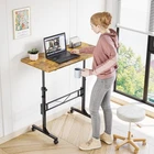 Folding Laptop Mobile Standing Desk with Wheels Height Adjustable Rustic Brown Color for Home Office Specifications: Color: rustic brown Material: MDF, metal Overall Dimension: 31.5" X 15.75" X 26.77"-35.85"(H) Package Includes: 1pc standing desk and all accessories for installation Features: 【Adjustable Height Standing Desk】This mobile stand up can be adjusted in the height range from 27" to 36", Large Desktop Space desktop for more work space. 【Ergonomic Home Office Desk】The change between sitting and standing helps you relieve fatigue, avoid health problems of sitting and improve work efficiency, standing desk can improve posture, relieve back and neck pain, provide you with more healthy work position. 【Walking Pad Desk】4 lockable rollers can make the desk move and fix the position as you want, This mobile tray table is perfect for walking pad, dining, writing, painting, computer, playing games, etc. It is suitable for walking pad desk study desk, couch laptop table, bedroom desk, snack TV tray, etc.Convenient for your daily use. 【2025 New Upgrade】Desktop Double Anti-moving Design,The desk can bear 200 pounds without sliding down.The mobile computer desk is waterproof, durable and non-deformable, make the most of your living and office space! Allows you to store books, office supplies, and daily necessities anytime, anywhere. Tips: You may receive 2 or more flat packages for some products in our shop, please track all the tracking numbers we update to you. Notes: It takes some time to install the furniture, please don't be worried about the installation, and please pay attention to your safety while installing. We will ship from the US warehouse, you need to wait longer time than usual during the current special epidemic situation, please track the package delivery information at any time. If there is no stock for the accessories which are necessary for installation in the US warehouse, we will arrange the replacements from our warehouse in China directly, but it will take longer time for your patient waiting. Please do not be hesitate to contact us for any questions you have before or after purchasing, we are always online and will try our best to help you to solve it.