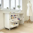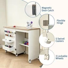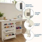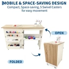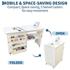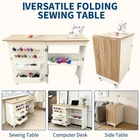 【Sturdy Construction】-Crafted from high-quality engineered wood and reinforced metal hinges, this sewing table guarantees stability and durability. The inclusion of lockable wheels and magnetic locks keep supplies from falling out when moving. 【Easy Mobility & Stability】--This sewing machine table features 5 universal wheels that ensures effortless mobility. 3 lockable wheels to keep your craft station securely in place when needed, giving you a steady crafting experience, delivering both flexibility and stability. 【Ample Storage Space】--The foldable sewing table features a spacious tabletop for your sewing machine, lights, and tools, allowing you to work comfortably on your projects. It also includes 2 storage trays, 16 pegs, and an open shelf for pins, yarns, scissors and storage boxes, keep all your sewing essentials perfectly organized. 【Space Saving & Foldable Design】--This folding sewing table seamlessly transforms into a side table or sewing machines station, providing a versatile storage solution that complements any room. Its compact folding design makes an excellent choice for small spaces. 【Effortless Assembly】--This Multipurpose Craft Station includes all necessary accessories and clear instructions for straightforward assembly, allowing you to set up quickly and start playing without delays. The open dimensions are 47.24" x 15.75" x 31.02", and when closed, it measures 23.62" x 15.75" x 31.02". Product description