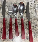 Elevate your dining experience with the Food Network Red Hibiscus Stainless Silverware Set. Crafted for versatility, this 12-piece collection is suitable for all occasions, whether a casual breakfast or a festive gathering. Each piece features a vibrant red hue paired with a classic mid-century modern design, adding a splash of color and sophistication to your table setting. The set includes forks, knives, and spoons, each meticulously designed with a solid handle pattern for comfortable handling. Made from durable stainless steel with plastic handles, this set promises longevity and easy maintenance with hand wash only care. Ideal for teens, adults, and kids, it's a stylish and practical choice for any household.