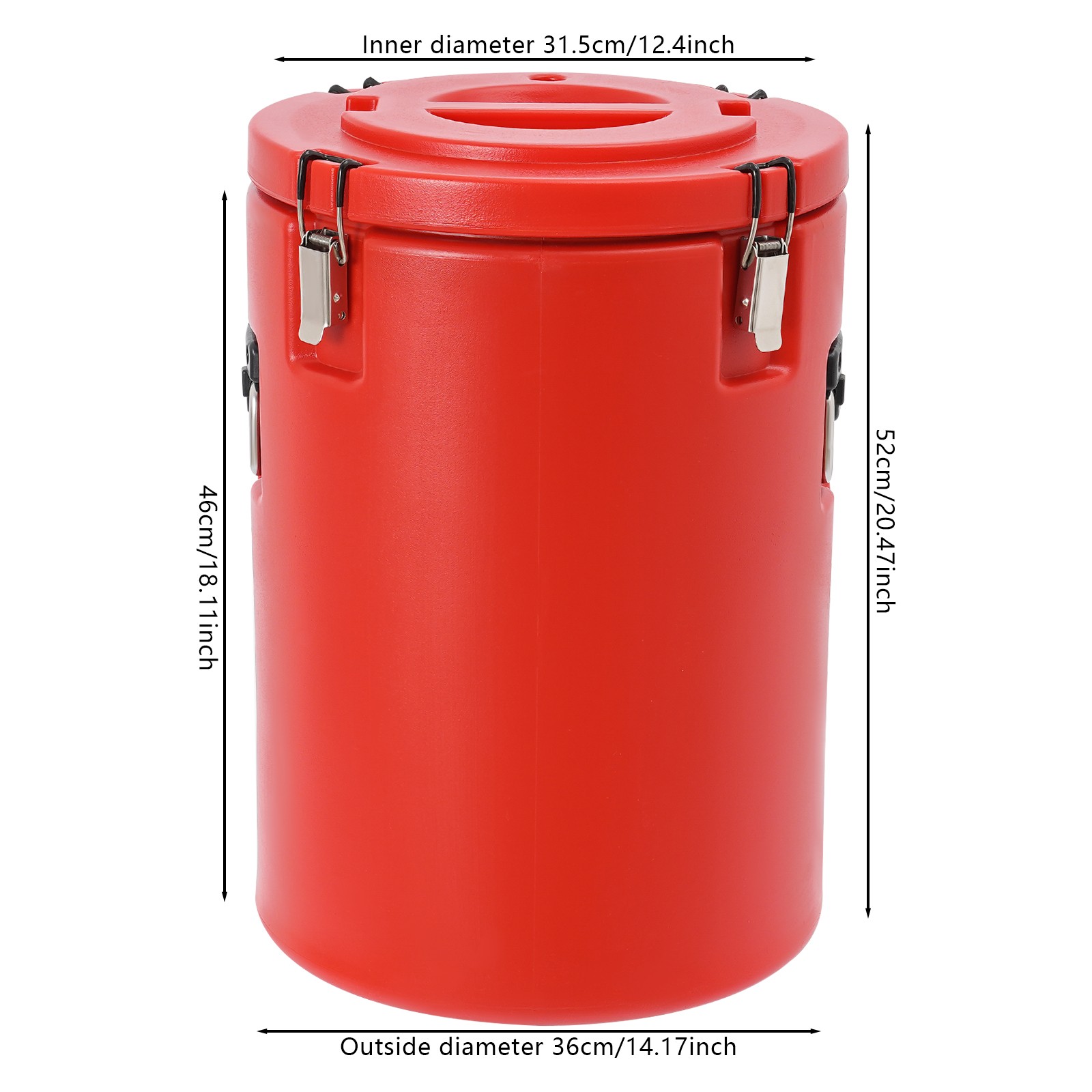 Food Warmer Hot or Cooler Insulated Food Container Carrier Portable Lunch Box Specifications Material: Stainless Steel, Plastic, PU Foam, Silicone Process: Blow Molding Color: Red Style: Modern Shape: Round Assembly Required: No Mount Type: Tabletop, Free-standing Capacity: 40L/10.57gal Actual Capacity: 35L/9.25gal Temperature Preservation Time: About 10-15H Product External Size(D*H): 36*52cm/14.17*20.47in Product Internal Size(D*H): 31.5*46cm/12.4*18.11in Gross Weight: 8kg/17.64lbs Net Weight: 7.6kg/16.76lbs Package Size: 45*45*41cm/17.72*17.72*16.14in Package Included 1* Commercial Soup Container 1* Lid Key Features Build to Last: Made of stainless steel, plastic, and PU, and adopting a blow molding process, this product is sturdy, wear-resistant, rustproof, corrosion-resistant , and safe to use, performing well for a long time. Large Capacity: The total 9.25gal capacity can meet the needs of large parties and businesses. You do not need to add liquid frequently, saving time and effort. Enjoy Drinking: It's so pleasant and comfortable to have a cool beer (not included) on a hot summer day, and it can satisfy the whole family's drinking needs without having to worry about frequent drink additions. Strong Insulation: The 15mm thick PU foam interlayer filled between the inner liner and outer shell will keep your drinks hot and cold for about 10-15 hours, sealing the taste and aroma and allowing you to drink a cup of hot tea in the winter and drink a cup of iced coffee in the summer. Good Sealing Performance: The lid with a silicone sealing ring not only prevents the soup from spilling but also enhances the heat preservation effect. Easy to Use: The cover at the top is matched with grooves to allow you to easily grab, open, or tighten it. The large opening allows for easy pouring of drinks. Compact and Portable: The small footprint (14.17in diameter) makes the product only take up a small space and the handles on both sides allow you to easily take it to different locations. Easy to Clea n: A smooth surface, simple structure, removable lid, and large mouth opening allow you to easily clean it with a wet cloth and water (not included). Ideal Gift: This practical product is a great holiday or housewarming gift for family, friends, and lovers so that they can enjoy a more convenient life. Buy with Confidence: We stand behind all our guests and look forward to assisting you with your purchase. It is our pleasure to answer your confusion and questions. The end of the story between us is not "we sell and you buy". Details 4 Buckles: They can lock in the temperature more securely for longer-lasting insulation. Ventilation Hole: It makes it easy to open the lid when the pressure inside the product is high. Smooth Edges: They can effectively care for your skin when using or cleaning this product. Anti-slip Base: It can make the product placed stably and not easy to slide. Application It is suitable for all kinds of parties, outdoor picnics, travels, cafes, buffets, hotels, restaurants, milk tea shops, and camping to hold hot chocolate, milk tea, iced tea, milk, juice, coffee, and other cold and hot drinks. Notes Please note that this product does not include beverages. Please note that the insulation time is related to the ambient temperature, and the time we provide is for reference only. This product does not have a heating function. Please do not shake the product vigorously. Please be careful when using this product, as hot or icy water may cause harm to you. Please allow the slight color difference caused by the shooting light and 1-3cm error due to manual measurement, and make sure you do not mind before you order. Payment Delivery details Terms of sales About us Contact us Payment We accept ebay payment 。 Fees such as import duties, taxes are not included in the item price or shipping costs. These charges are the buyer's responsibility. Delivery details Shipping: 2-9 working days to: USA Terms of sales We maintain high standards of excellence and strive for hundred percent customer satisfaction. Feedback is very important to us. We hope that you contact us immediately before you give neutral or negative feedback, so that we can address your concerns. It is impossible to address issues if we do not know about them! About us Your satis faction is our ultimate goal. We work hard to earn your trust and future business. Our certified technicians have tested each item before shipping. The unit comes with 1 year limited warranty on all manufacturing defects. a) If you receive a defective item, you may return it or ask for a discount. Please contact us within 14 days after you receive the package. b) What you returned must be intact and in its original packaging as re? u. Customer is responsible for shipping costs of the returned item. c) We will cover the cost of shipping back t with the shipping rate indicated in the registration page. We will send you a new unit or refund the full payment you paid. Thank you. Contact us Business Hour Business Hour: Monday To Friday: 8:30 AM to 5:00 PM (Beijing China time) Due to time zones, our reply to your questions may not be immediately. But within above working time, we will reply your email within 24 hours. If it's non-workdays, please kindly be patient and wait till Monday. Please contact us with ebay message. Please feel free to contact us if you have any questions. Monday To Friday: 8:30 AM to 5:00 PM (Beijing China time) Due to time zones, our reply to your questions may not be immediately. But within above working time, we will reply your email within 24 hours. If it's non-workdays, please kindly be patient and wait till Monday. Please contact us with ebay message. Please feel free to contact us if you have any questions. Material Stainless Steel, Plastic, PU Foam, Silicone Process Blow Molding Color Red Shape Round Assembly Required No Mount Type Tabletop, Free-standing Capacity 40L/10.57gal Actual Capacity 35L/9.25gal Temperature Preservation Time