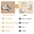 ☞Do your baby or kids often meet head hitting accident? ☞IOr knees and legs get bumping by sharp corners hidden everywhere? Why not try our corner protectors with easy installation? Our Advantage: 1. Strong adhesive, the toddler won't be easy to take them off. 2. Transparent color, match kind of furniture with different colors. Moreover, it’s not noticeable for guests and the little ones. 3. Pre-Taped processing, save lot’s of time for installing. 4. L-Shaped makes it hard to be stuffed into mouth, give more safety for babies. 5. Thicken design, provide more flexibility. Installation Instruction: 1. Clean the specific locations of your furniture corners. 2. Peer off the adhesive stickers. 3. Get the corner guard located, and press tightly for a few seconds. 4. It’s recommended to keep 24hours for more stable, don’t try to pull it up until it gets completed the installation 【Food-Grade Silicone Material】 Made of Soft high-temperature-resistant Silicone (Adhesive Except), Offer 5x cushion, softer and thicker than normal PVC corner protectors. Unlike the foam material, it can not be tore easily by babies and children, but also provide with flexible proofing guard for baby safety. 【Upgrade Enhanced Thickness】The L-Shaped corner protector prevents babies from swallowed than O-Shaped ones. The thickened and large design will offer more padding protection. (The thickness of edge should be no less than 0.6 inches, which have more effective sticky area) 【Pre-Taped Adhesive, Easy to Install】 Forget about the annoying process of installation of old version corner protector, our one is pre-taped, which will help you save much more time. Just peel the protective stickers, get positioned with the cleaned place, press tightly, and let stand for 24 hours. The whole installation won't take more than 1 minute. 【Multifunctional in Various Area】Suitable for all kinds of surfaces, such as Wood, Glass, Metal, Marble, Cement. The corner protectors are essential for the home with little ones, kitchen, living room, bedroom, every corner is very dangerous. Or even can be used in an office for adults' safety. Also, they will help keep away from the friction between furniture and wall. 【No Harm to Furniture】 Don't worry about the damage to furniture, our corner guards will protect indoor tables, cabinets, shelf, bed, dresser, door, chairs, fireplace, and outdoor corners. Also, the upgraded 3M adhesive will help you easier to clean when removed ( for quick and better clean, please use a hot towel or hair-dryer to preprocess firstly)