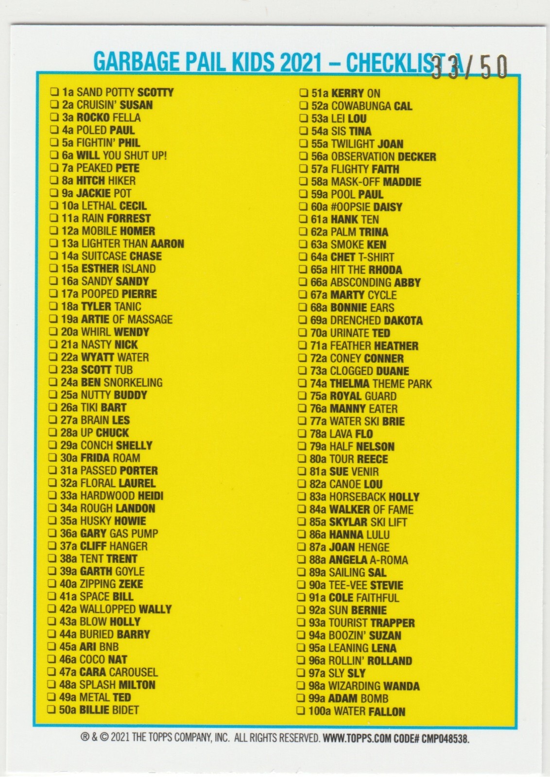 SP 33/50 Fool's Gold Parallel Buried Barry #44a Garbage Pail Kids GPK 2021 Go On Vacation trading card sticker
