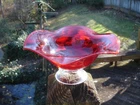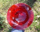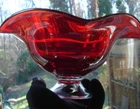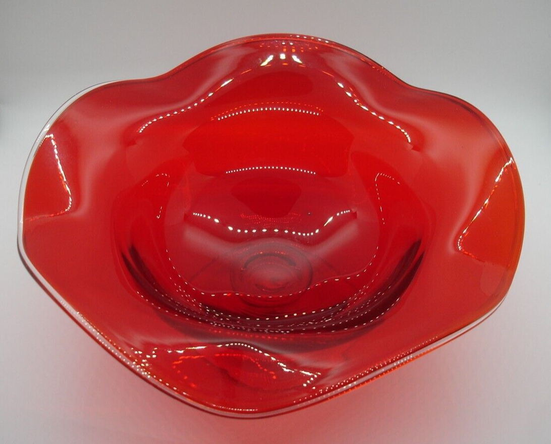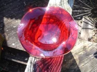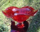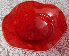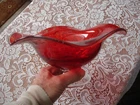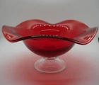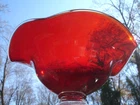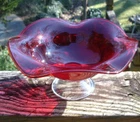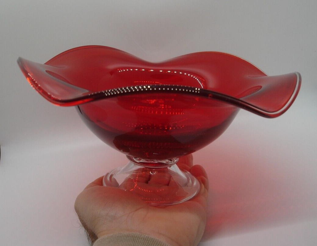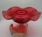 Gorgeous ruby red 4.5" tall x 9.25" wide undulating rim fruit bowl footed with clear glass... beautiful deep ruby red glass (not just a cheap flashing but a quality glass in ruby red)... last photo shows a little bubble in glass... plenty of photos (24) & in excellent condition... Please include $7.95 domestic s/h. Thanks for stopping in... "For God so loved the world that He gave his one and only Son, that whoever believes in him, shall not perish but have eternal life" Je sus (John chapter 3)