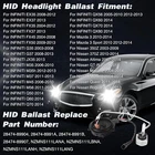 For 12-19 Infiniti JX35 QX60 Xenon Ballast & Igniter HID Control Unit Module ITEM DESCRIPTION Condition: Brand New, High Quality Color: Black Material: Metal & Plastic Type: Ballast & Igniter & Wire & Bulb Model: for NISSAN INFINITI MAZDA Placement on Vehicle:Front Left or Right Ballast Type: HID Xenon Headlight Ballast Bulb Type: D2R D2S 2000hr Bulb Size: D2R D2S Input: DC12V Output: AC85V 35W Interchange Part#: Matsushita Part# NZMNS111LBNA / NZMNS111LANA Nissan / Infiniti Part#s 28474-89904 / 2847489904 28474-89907 / 2847489907 28474-89915 / 2847489915 28474-8991A / 284748991A 28474-8991B / 284748991B 28474-8992A / 284748992A Fitment : fits both LEFT and RIGHT side Nissan 2003-2009 Nissan 350Z 2009-2014 Nissan 370Z 2007-2014 Nissan Altima 2004-2014 Nissan Maxima 2004-2014 Nissan Murano 2008-2013 Nissan Rogue 2009-2014 Nissan GT-R Infiniti 2008-2013 Infiniti EX35 2008-2013 Infiniti EX37 2012-2015 Infiniti JX35 2012-2015 Infiniti QX60 2004-2015 Infiniti QX56 2004-2015 Infiniti QX80 2004-2014 Infiniti QX70 2004-2014 Infiniti FX35 2004-2014 Infiniti FX37 2004-2014 Infiniti FX45 2004-2014 Infiniti FX50 2005-2015 Infiniti M35 2005-2015 Infiniti M45 2005-2015 Infiniti M37 2005-2015 Infiniti M56 2005-2015 Infiniti Q70 2005-2006 Infiniti Q45 2003-2015 Infiniti G37 G35 Q60 Coupe 2005-2015 Infiniti G37 G35 Q50 Q40 Sedan (Please refer to compatibility chart for details) Package Includes: One Ballast & Igniter & D2S Bulb as pictured Brand New Shipping Policy Payment Method Order Cancel & Returns Policy Contact us About Us Shipping Policy Delivery details -Handling time:We will prepare your order within 1-3 Business Day -Delivery Time: Normally it takes about 8-16 working days to deliver to your addresss. -Note: 1. Please ensure that the shipping address( English Address and Name) and the postcode you provide at checkout and PayPal is accurate. We are not responsible for undeliverable addresses. 2. The delivery time is for reference only.It will be influenced by the flight, holiday, weather, local post or custom passing .But normally we deliver it faster than expected. Payment Method Most of the payment methods are available, Such as Paypal, Payoneer, Credit Card. Within 1 business day of receiving your payment, we will begin processing your order. Order Cancel & Returns Policy -About Order Cancel: Pls inform us if you need to cancel the order within 24 hours. If orders are more than 24 hours and we have already sent the items, it will be difficult for us to cancel the order. So pls contact us in time, thank you for your understanding! -About Order Returns & Exchange: if you receive wrong or defective parts, pls contact us before you take any other actions, We will solve the problems for you and give you a satisfied reply asap. Contact us If you are unsure or have questions regarding the correct part for your car, pls message or email us and we would be more than happy to assist you. To ensure a fast and accurate response pls include your vehicle's year, make, model, and engine size. We will reply all messages within 24 hours. Business Day: From Monday to Saturday, 9:00 am to 6:00 pm (Beijing Time). Our goal is to make sure you are a happy buyer and have a pleasant shopping with us. When you bought our product, if anything unusual happens: Not received the items, or inconsistent with the description, or other reasons make you not satisfied. Please do not leave neutral (or negative) feedback or open case easily, please feel free to write to contact me. We will do our best service to solve your problem!If you contact us via eBay, we will be more than happy to work with you! About Us We have our business in China, since then we have been serving the auto market with a wide range of automotive products and accessories. We are able to provide customers with the most competitive price due to direct dealing with manufacturers; eliminating the middle person. We are mainly offering car switches which are produced by ourselves, we also offer a lot of auto parts such as sensors, door handles, idel valves, seat heaters which we get from our cooperated factories. On Feb 12, 2025 at 23:46:16 PST, seller added the following information: