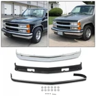 For 1988-2000 Chevy Suburban GMC C1500 K1500 Bumper Face Bar Trim Air Deflector Feature Condition: 100% Brand New Color: Silver Bumper face bar+Black Trim+Black Air Deflector Quantity sold: Set of 3 Material: Steel Aftermarket Replace Number For: 15574111, GM1002802, 15574113, GM1057127, 15569430, GM1090105 No installation instructions (Reference video available) Size: Thickness 1.5mm Fits for 1988-1999 GMC C/K 1500 1988-2000 GMC C/K 2500/3500 1988-1999 Chevrolet C/K 1500 1988-2000 Chevrolet C/K 2500/3500 1992-1999 GMC Suburban C/K 1500/2500 1992-1999 Chevrolet Suburban C/K 1500/2500 1992-2000 GMC Yukon 1992-1994 Chevrolet Blazer 1995-2000 Chevrolet Tahoe Package Include 1x Bumper face bar + 1x Bumper Trim+ 1x Lower Air Deflector