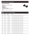 Document For 1988-2002 Lincoln Continental Suspension Stabilizer Bar Bushing Kit MOOG Notes: 22 mm. Sway Bar Diameter; Placement on Vehicle: Front To Frame Product Description Description Brand: MOOG Warranty: 12 Month Warranty Part Type: Suspension Stabilizer Bar Bushing Kit Compatible Years: 1988 1989 1990 1991 1992 1993 1994 1995 1996 1997 1998 1999 2000 2001 2002 Description Stab Bar Bushing Kit Suspension Stabilizer Bar Bushing Kit Item Specifics Bar Diameter: 0.860 IN Inside Diameter: 0.860 IN Outside Diameter: 1.670 IN Length: 1.950 IN Bushing Quantity: 2 Mounting Hardware Included: No Material: Thermoplastic Confirm Your Vehicle Compatibility Year Make Model Notes 1988 Lincoln Continental 22 mm. Sway Bar Diameter| Position: Front To Frame; 1989 Lincoln Continental 22 mm. Sway Bar Diameter| Position: Front To Frame; 1990 Lincoln Continental 22 mm. Sway Bar Diameter| Position: Front To Frame; 1991 Lincoln Continental 22 mm. Sway Bar Diameter| Position: Front To Frame; 1992 Lincoln Continental 22 mm. Sway Bar Diameter| Position: Front To Frame; 1993 Lincoln Continental 22 mm. Sway Bar Diameter| Position: Front To Frame; 1994 Lincoln Continental 22 mm. Sway Bar Diameter| Position: Front To Frame; 1995 Lincoln Continental 22 mm. Sway Bar Diameter| Position: Front To Frame; 1996 Lincoln Continental 22 mm. Sway Bar Diameter| Position: Front To Frame; 1997 Lincoln Continental 22 mm. Sway Bar Diameter| Position: Front To Frame; 1998 Lincoln Continental 22 mm. Sway Bar Diameter| Position: Front To Frame; 1999 Lincoln Continental 22 mm. Sway Bar Diameter| Position: Front To Frame; 2000 Lincoln Continental 22 mm. Sway Bar Diameter| Position: Front To Frame; 2001 Lincoln Continental 22 mm. Sway Bar Diameter| Position: Front To Frame; 2002 Lincoln Continental 22 mm. Sway Bar Diameter| Position: Front To Frame; Please read before purchasing Shipping and Cancellation Policy We utilize UPS, FedEx, and USPS for shipping, selecting the nearest available location to expedite delivery. Tracking numbers will be uploaded on eBay upon shipment. Most items are shipped on the same business day. Please note that interchange tables are intended for American Market Vehicles only. All orders are processed automatically. Before placing your order, please: Ensure that this part fits your vehicle by entering your vehicle's Year, Make, Model, Trim, and Engine in the Compatibility Table. Additionally, review the notes section in the compatibility chart for additional specifications about this part. If you're still unsure whether the part fits your car, please contact us for assistance. Verify that the item you're about to purchase will solve the problem with your car. Double-check that the delivery address provided during checkout is accurate. Return Policy We offer free returns for domestic purchases. However, please note that we are not responsible for the cost of international return shipping. Before returning items or leaving anything other than positive feedback, please contact us. For further details regarding returns, please refer to the "Shipping and Payments" tab. Additionally, it is important to understand that manufacturers reserve the right to modify the appearance or material of their items. They may even discontinue an item and replace it with an updated version. Consequently, the picture displayed may not always reflect the most recent changes, though this occurs rarely. We source our pictures directly from the manufacturer and may not immediately receive updated photos if changes are made. California Proposition 65 WARNING: This product may contain chemicals known to the State of California to cause cancer and birth defects or other reproductive harm. For more info go to www.p65warnings.ca.gov 2024 DTautoparts All Rights Reserved