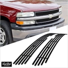 Description This item includes 2 pcs Bolt Over/Overlay/Bolton (Drilling Not Required) 8x6 Horizontal Billet Grill Insert with Powder Coated surface finish, along with mounting hardware and installation manual. Please note the material is Stainless Steel SS and color is Black. Fitment * Compatible with Chevy Silverado 1500/1500HD/2500 1999-2002 * Compatible with Chevy Suburban 2000-2006 * Compatible with Chevy Tahoe 2000-2006 * Compatible with Chevy Silverado 2500 HD/3500 1999-2000 Features 【CUSTOM FIT】* Compatible with Chevy Silverado 1500/1500HD/2500 1999-2002 * Compatible with Chevy Suburban 2000-2006 * Compatible with Chevy Tahoe 2000-2006 * Compatible with Chevy Silverado 2500 HD/3500 1999-2000 【PERFECT DESIGN】Premium stainless steel billets with black powder coated surface guaranteed to last. This grille enhances the visual appearance of your car. 【SPECS】Premium Stainless Steel SS guaranteed to last. Hardware and manual included in the package. This is grille insert only, no logo, emblem, frame, or shell included. 【INSTALLATION】This Main Upper 8x6 Horizontal Billet grille insert is a Bolt Over/Overlay/Bolton (Drilling Not Required) for your OE grille, and you need to keep your OE grille shell. 【SATISFACTION GUARANTEED】Please free feel to contact us for any issue with our grille.