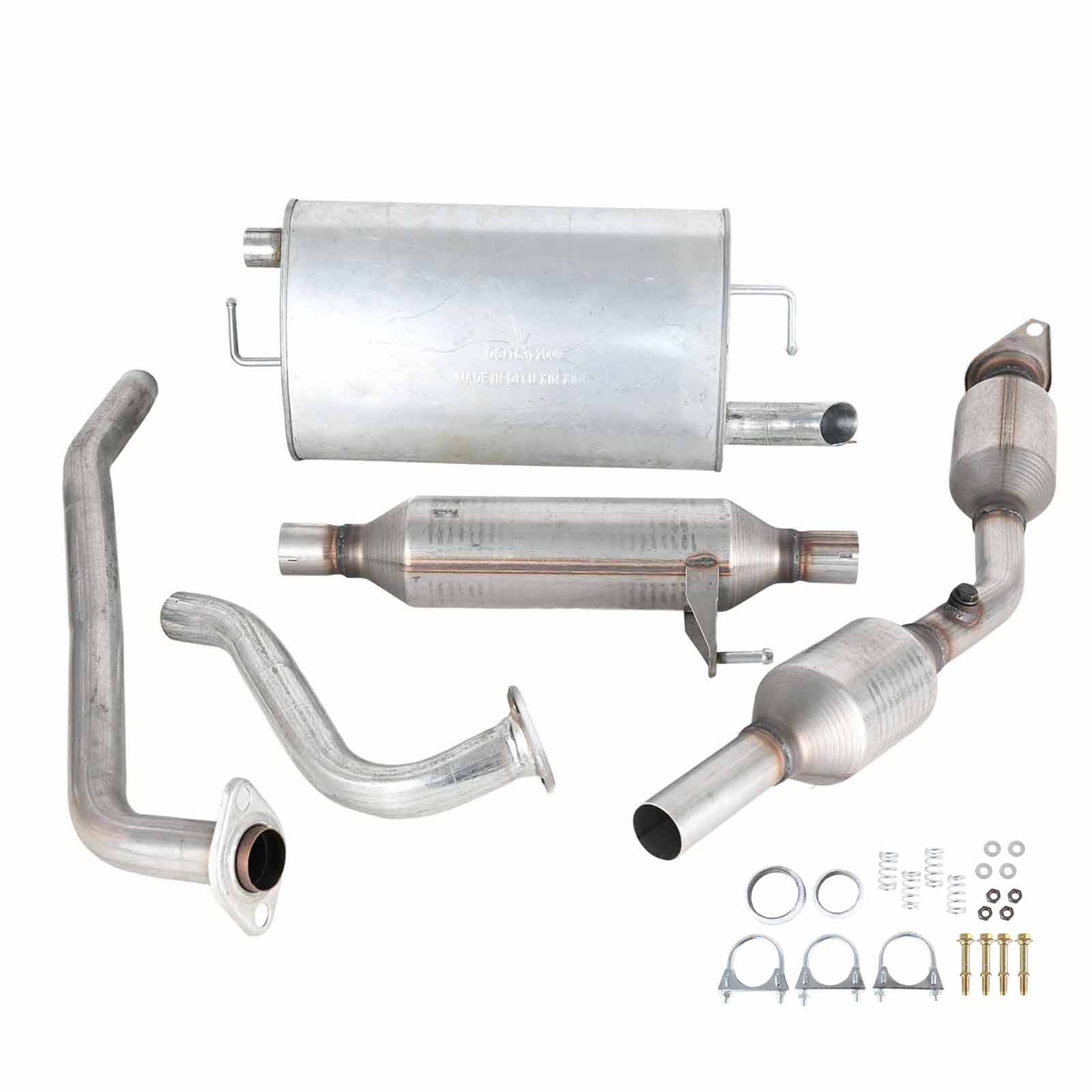 FITMENT: For 2003-2008 Toyota Corolla 1.8L WARRANTY: Manufacturer warranty included 30-day return policy Unused items in original packaging Protective packaging QUALITY: Quality control inspected Premium materials Long service life PACKAGE INCLUDED: 1*Front Catalytic Converter Set (Shown as the picture) 1*Rear Catalytic Converter Set (Shown as the picture) 1*Muffler(Shown as the picture) Mounting Hardware All accessories shown in the picture SPECIFICATIONS: For 2003-2008 TOYOTA COROLLA 1.8L Front Air Tube 53717 Air Tube Count No Body Height 4 Body Length 8 Body Material Stainless Steel Body Shape Round Body Width 4 California Air Resources Board (CARB) Certified No Converter Quantity 2 Grade Type Regular Inlet Type 2 Bolt welded flange Inlet Quantity 1 Mounting Hardware Included Yes Outlet Outside Diameter 2.125 Outlet Type Pipe Connection Outlet Quantity 1 Overall Length 31 IN Substrate Material Ceramic Universal Or Specific Fit Specific Fit Oxygen Sensor Location Pre And Post Catalyst For 2003-2008 TOYOTA COROLLA 1.8L Rear Air Tube 54698 Air Tube Count No Body Height 4 Body Length 20 Body Material Stainless Steel Body Shape Round Body Width 4 California Air Resources Board (CARB) Certified No Converter Quantity 2 Grade Type Regular Inlet Type Pipe Connection Inlet Quantity 1 Mounting Hardware Included Yes Outlet Type 2 Bolt welded flange Outlet Quantity 1 Overall Length 56 IN Substrate Material Ceramic Universal Or Specific Fit Specific Fit Oxygen Sensor Location Pre And Post Catalyst NOTE:on some models your Converter may be welded to your extension pipe. In this case you will have to cut your extension pipe off your converter. we ship clamps and a 2 inch ID connector