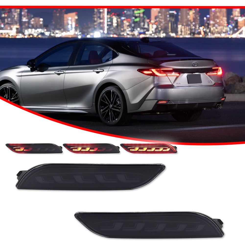 For 2018-2025 Toyota Camry Smoke Rear Reflector Red LED Tail Brake Signal Lights For 2018-2025 Toyota Camry Smoke Rear Reflector Red LED Tail Brake Signal Lights This auction features one pair of brand new 3D optic smoked lens Red LED rear bumper reflector brake tail lights w/ sequential turn signal lights, rear fog lighting kit for Toyota Camry 2018-2025. This set of smoked lens LED rear bumper lights will elevate your car's appearance to complete its powerful presence as it drives down the street or pulls into a parking lot. If you wanted to upgrade your newly Camry rear reflector to LED lights, this lights will be your best choice ! These newly designed LED bumper reflector lights are inspired by the highly popular Optic LED tube tail lamps that you would see on many of those new Audi/BMW/Mercedes as well as 2015-up Lexus NX and LS. Lexus is known for their highly innovative futuristic design so you can get a pair of these LED bumper reflectors and show off that classy look. ☛Feature: 100% Brand new and quality Smoked lens LED Color: Red P owered by high power Brilliant Red LED SMD Exact fit and direct replacement OEM Part Number: TO 1185110 TO1185110 81910-06070 81920-06060 8191006070 8192006060 17-5771-00-1 17-5772-00-1 It replaces the stock Rear Bumper Red Reflector Assembly and functions as Add-on LED Tail Running / Brake Stop Light, Rear Fog Light, and Sequential Turn Signal Indicator Light in OEM fitment ( 3-in-1 ). DOT SAE approved Gives car a different appearance that is ideal for show use Lifespan: >50,000 hrs ☛Specification: T ype of Lights: LED Rear bumper tail brake signal light (3 in 1) with smoked lens reflector for Camry Waterproof: IP67 Lens color: Smoked Light color: Red ( Brilliant Red color temp. light ) Installation position: Rear Bumper Reflectors Ultrasonically sealed L ow power consumption; Quick Instant Start-Up time With the red lens full LED bumper reflector tail lights, your Camry will realize its potential and sport a unique, eye-catching look with added safety features. ☛Fit for: For Toyota Camry 2018-2025 *** Please verify your vehicle OEM manufacturer part number matches the one above before purchase *** Please check with our pictures to make sure you have the correct rear body kit for this LED bumper reflector light *** For detail US Spec, please refer to our compatibility list ☛ Applications Fitment of this LED bumper reflector tail brake light lamp: Direct Replace Original OEM Stock / Manufacturer Part Numbers: TO1185110 TO1185110 81910-06070 81920-06060 8191006070 8192006060 17-5771-00-1 17-5772-00-1 ☛Package included: One Pair (L&R) LED Rear Bumper Reflector Lights ☛Installation: To install these LED bumper reflectors, you simply need to access to the back of the rear bumper, push to remove the stock bumper reflectors and directly replace back with these LED reflectors and then tap the wires accordingly. Connect black wire to tail light negative, white wire to tail lights positive, yellow wire to signal light positive and red wire to brake light positive; It works at 12V~24V DC. Note: Professional installation is highly recommended! Payment Delivery details Terms of sales Contact us Feedback Payment We only accept payment via PayPal. Please make sure shipping address on your PayPal account is correct and up-to-date. Payment from bank account and all major credit cards will be accepted through secure payment processor PayPal. Delivery details Item will be shipped to buyer's PayPal shipping address within 1 business day after clear payment received. Tracking number of domestic orders will show up on buyer's eBay account once order is shipped. Please make sure shipping address on your PayPal account is correct & up-to-date. All of our items are shipped from our GA, USA warehous e. * Please note that post office doesn't process parcel on Saturday, Sunday & public holidays. Terms of sales Warranty policy: This item comes with 60 day exchange (replacement) warranty. Buyer could choose exchange to same item or apply store credit to other items in our store. Exchange will be processed after we received return. We only accept refund request for un-opened or un-used item, buyer has to return item in original condition and retail package within 30 day. 20% restocking fee will be deducted for all refund cases. Refund will be processed after we received return. Buyer is responsible for return shipping cost of ALL exchange/refund cases. We will cover shipping cost when sending out replacement. Products that are modified/customized are NOT covered by our return/exchange policy. Compatibility issue: Please check actual stock bulb model & housing size before purchasing replacement bulbs. Compatibility list on eBay listing is not a complete list and it is a known issue that there are errors on it. If you encounter model/functional compatibility issue, please contact us for assistance. We will help you exchange to compatible item (if available). We only accept refund request if we don't carry compatible item. 20% restocking fee will be deducted for ALL refund cases. Buyer is responsible for both return and resend shipping cost when exchanging an item with compatibility issue. We will cover resend shipping cost if compatibility problem is directly caused by incorrect information on listing. Buyer will be charged for price difference when upgrading to a more expensive model. Contact us Should you have any question/concern regarding our item/auction, please feel free to send us an eBay message. We will answer your question in a timely manner (within 12 hours in most cases). Reply will show up on your eBay account and goes to the email address associated with your eBay account. If you don't receive our reply within 2 business day, please kindly check your junk-mail box. If you are interested in bulk order, please contact us for a quote. Feedback We appreciate your business and strived to improve our customer service and our commitment to quality. We will leave