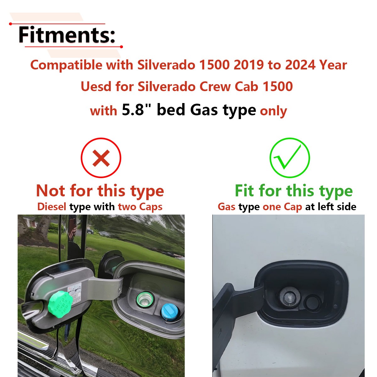 No te : The product is equipped with metal Pin The product Ue sd for 2019 - 2024 Chevrolet Silverado 1500 with 5' 8" bed ONLY Gas models ONLY Please carefully check whether your vehicle meets this condition before purchasing. Part N umber : 84745940