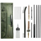 Features This is a 10 piece rifle cleaning kit, for the .22LR, .223, .257, etc. Anything that is .20-.25 caliber can be cleaned with this kit. This kit includes a .22 cal brass brush, a .22 cal chamber brush, a plastic oil bottle, 2 pc patch holder, 4 pc rifle rods, and a double end nylon cleaning brush. You will also receive a nice canvas pouch to keep everything in. This is a very handy kit. Size of canvas pouch: 25cm x 10cm Package includes 1 x 22 cal brass brush 1 x 22 cal chamber brush 1 x plastic oil bottle 2 x patch holder 4 x rifle rods 1 x double end nylon cleaning brush On Nov 13, 2024 at 19:08:23 PST, seller added the following information: