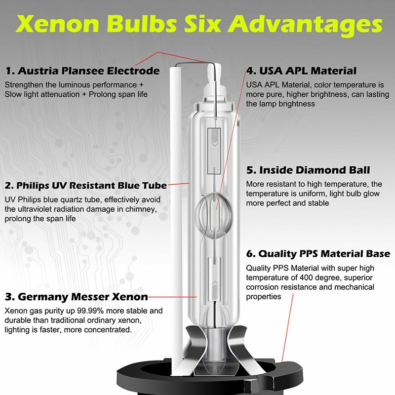 9005 High Beam: LED Quantity(each bulb): 2pcs* CSP chips (Super bright 2-Sides) Luminous Flux: 12000LM(6000LM) Color Temperature: 6000K Diamond White IP67 rated water and dust seal,360 degree beam angle Material: Aviation 6063 aluminum profile Operating Temperature: -40-80 degree Celsius Over 50000hrs lifetime Usage: headlight,fog light (2pcs) CSP LED headlight conversion kit D2S Low Beam: Low power consumption and long lifespan Waterproof and dustproof HID Simple to install With enhanced durability and shock resistance You can see more clearly when driving at night Enhance driving safety Color temperature:6000K Light Color: White Power: 35W/pcs Type: D2S Operating Voltage: 9-32VDC Waterproof Rate: IP 68 Iuminous Flux: 3800LM/pcs Life span: 50000 hours Body Color:Silver Working Temperature: -40℃ - +80℃ Compatibility: Car, motorcycle, electric motor car Package Includes 2pcs 35W HID Xenon Light Bulbs Xenon light is a real highlight for all drivers looking for high performance and stylish design packed with special features and innovative technology. In addition to many other benefits, xenon technology achieves excellent road illumination as well as individual light design. H11 Fog Light+9005/9006 Daytime Running Light Bulb Bulb Size: H11/H8/H9+9005/H10/9145/9006 Application: Fog Driving Lights / Daytime Running Light DRL 100% Brand New and High quality. Use COB Led technoloty, amazing super bright lighting LED Type: LED chip high power Beam Type: 360°Beam Angle Color Temperature: 6000K Super White Working Voltage: DC 12V to 24V High power can reach 100W, Low Power Consumption No delay to light up, Faster on/off response time Lifespan: 50000 working hours ,Adopt imported chips, stable quality, long service life The model is as the same as factory light, no need to change car wire rute,just Plug and Play, NO modification required Energy saving, environmental protection, Stable performance, through strict test, Use safer driving in the car Package Included: One Pair of 6000K super white 9005 LED High Beam bulbs One Pair of 6000K Xenon White D2S HID Headlight Low Beam Bulbs One Pair of 6000K super white H11 LED HID fog light driving bulbs One Pair of 6000K super white 9005LED HID Daytime Running Light Bulb