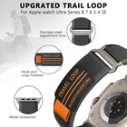 Description 1. New unique designed Trail loop nylon strap adjustable with metal hook totally perfect compatible with Apple Watch Ultra 2 49mm, Apple Watch Ultra 49mm, Apple watch series 9/8/7/6/5/4/3/2/1. 2. The thin, lightweight Trail Loop for apple watch is made from a nylon weave creating a soft band with increased elasticity for a comfortable fit. 3. Hook and loop fastener closure and pull tab design is much easier to adjust the fitted length, allows for a more precise size to your arm. 4. Easy to wear, adjust according to your wrist circumference. 5. Breathable and comfortable, not stuffy to wear. 6. The iwatch bands is suitable for 6.7"-9.05"(170mm-230mm) wrist. Package included: 1* Trail Loop Strap (Watch is not included!)