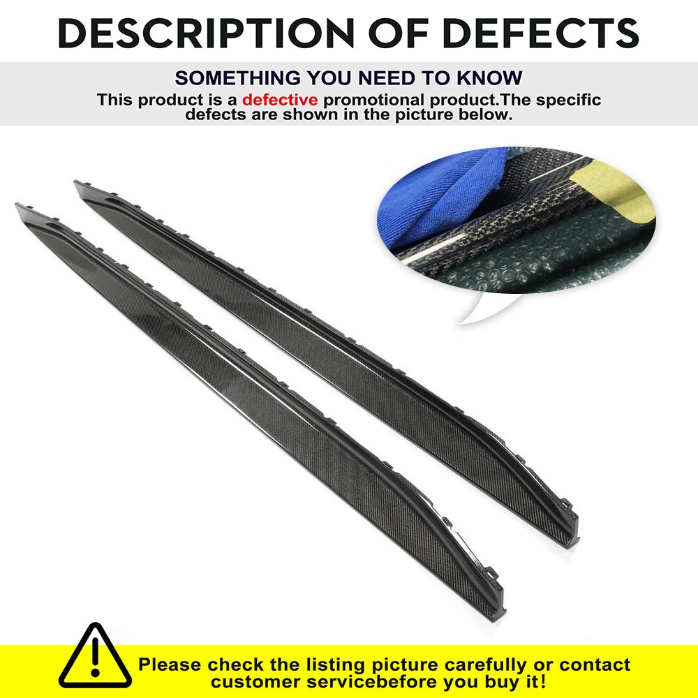 NOTE:This is a defective item clearance sale, the defects are mainly messy lines, please check the detail picture carefully before buying, no returns accepted. Fitment: Fits for BMW 4 Series G82 G83 M4 2-Door 2021-2025 Specifications: Product Name: Side Skirt Splitters Material: Carbon Fiber Package Size: 212*24*22cm Package Weight: 5kg Features: Super light Weight and Durable. UV-Protective Clear Coated: Fade & Rust Resistant. No Modification or Cutting Required. Direct Add-On Application with screws.Only Clean And Stick On. Directly Goes Over the 2 Valance On The Front Bumper Quality 3K Weaven Carbon Fiber Cover with Hard UV-Protected Coating. Improves Appearance and AeroDynamic All at Once. Package included: 2 x Side Skirt Splitters with screws NOTE:This is a defective item clearance sale, the defects are mainly messy lines, please check the detail picture carefully before buying, no returns accepted. Fitment: Fits for BMW 4 Series G82 G83 M4 2-Door 2021-2025 Specifications: Product Name: Side Skirt Splitters Material: Carbon Fiber Package Size: 212*24*22cm Package Weight: 5kg Features: Super light Weight and Durable. UV-Protective Clear Coated: Fade & Rust Resistant. No Modification or Cutting Required. Direct Add-On Application with screws.Only Clean And Stick On. Directly Goes Over the 2 Valance On The Front Bumper Quality 3K Weaven Carbon Fiber Cover with Hard UV-Protected Coating. Improves Appearance and AeroDynamic All at Once. Package included: 2 x Side Skirt Splitte rs with screws Delivery details Payment and TAX Warranty Policy Return Policy Contact us Delivery details NOTE: The shipping fee is only for the mainland of each country, it does not include the overseas territories, such as Virgin Islands (U.S.) , Puerto Rico, Hawaii , French Reunion Island, etc. But on ebay, when buyers from Puerto Rico and overseas territories , the shipping fee is equal to United States, it is NOT correct,. please contact us for correct shipping fee, or we will cancel the order. Sorry for the inconvenience, and thanks for your cooperation. 1. If you want to upgrade the shipping, please contact us before making payment, we will revise the shipping fee. 2. We will ship according to your Ebay address. Please make sure it is correct and include phone number for delivery. If you want to know the exact shipping time , please contact us . Payment and TAX 1.We accept Multiple Payment Methods Available: Credit Card, Debit Card, Gift Card, Apple Pay, Goggle Pay, PayPal and PayPal Cred. 2.Please leave note for your special request (e.g. Colors or Size) in ebay note when you pay the order. 3.Your must complete the payment within 7 days or Ebay will automatically open unpaid item case For US Buyer:The invoice value of each item is less than 800USD ,so you no need to pay any tariff . NON-US Buyer Note: Most countries are tax free based on our invoices, if tax is required, which will be buyer's responsibility. Warranty Policy We Warranty Our Product Within the Limited Warranty Policy Specified on Ebay. Please Email us if ou have any question regarding the warranty policy on a specific item. Most of the items are Aftermarket Parts and they are intended for off-road usage only, therefore no installation instruction will be included, Professional installation are Highly Recommended. We are not responsible for any damages to the item or the vehicle that occur during the installation of the item.Also, Please Make Sure Proper Installation is Performed as we are not responsible for item being missing or flew off after the installation. if you don't think the item can stay on the car properly, please do not attempt to drive the car with it and please check with professional shops/mechanics or contact us for assistance. Return Policy We Accept Returns Within the Return Period On Ebay. Return Authorization/Return Approval is Required For Every Return. So If you Wish to Make a Return On Your Purchase. Please Contact us Before You Send The item back For any damages occured to the item upon arrival, Please notify us within 5 days of the delivery so we can take proper action to fix the issue. So Please Kindly inspect and check the item condition upon arrival.For Any other Return Inquries, You can contact us within the return period to obtain return authorization/return approval. In case of return, the merchandise needs to be returned in original condition with origi- nal packaging in order to be eligible for an exchange or a refund. Items must be not opened in their original package. Any mark of installation, mounting, cutting, scratch or using will not be allowed. Contact us 1.We are trying our best to explain all details of the products here! If you have any question, please feel free to contact us by Ebay message, and We will get back to you within 24-48 hours. 2.Customer satisfaction is our NO.1 priority. If you are not happy with the item that you purchase, please contact us first. We will try our best to solve the problem with you.Please leave us a positive feedback if you receive the item.Please do not leave negative or neutral feedback without any contact.If you haven't received item in 30 days, please contact us and we will arrange refund.We appreciate your business.Happy Bidding & Have a nice day! 3.Working hours: From 8 a.m. to 6 p.m. from Monday to Friday. From 8 a.m. to 12 a.m. on Saturday morning Holiday/Rest time: Saturday afternoon and Sunday