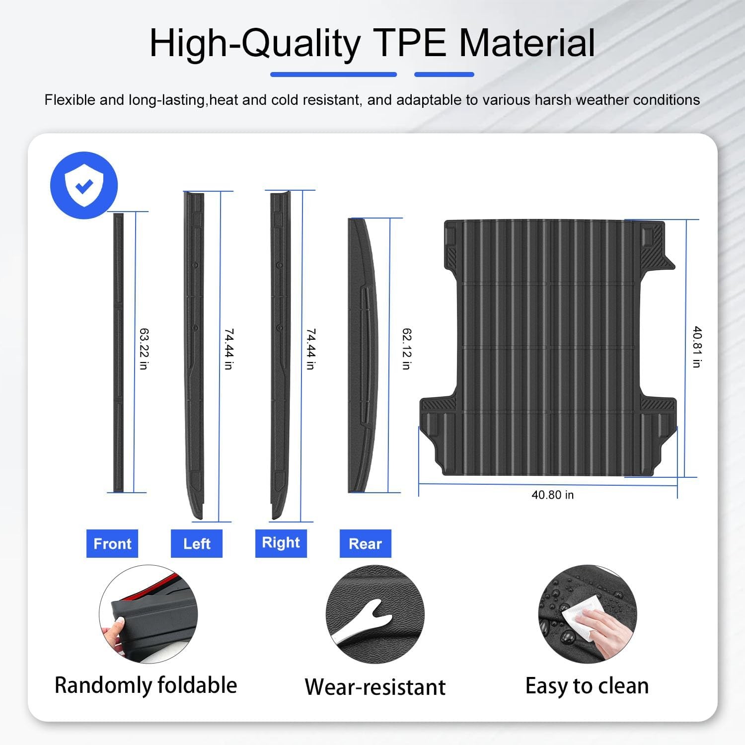 5.8FT Bed Mat Compatible with 2019-2026 Chevy Silverado GMC Sierra 1500 Truck Bed Mat Bed Liner Truck Bed Rail Cap Replacement for 2019-2026 Chevy Silverado Accessories Compatible with 2019-2026 Chevy Silverado and GMC Sierra 1500 models. Designed specifically for 5.8ft short beds; not compatible with MultiFlex tailgates. Made from durable TPE material, offering flexibility and wear resistance. Protects against sand, mud, water, snow, and oil, keeping your truck bed clean. Easy installation with double-sided tape; simply rinse to clean. Top Seller | Fast, Reliable Shipping | Always Free | 1-Day Processing | Customer Support You Can Trust Questions? We’re Happy to Help We’re committed to giving you a five-star experience from start to finish. Whether you’re just browsing or have already made a purchase, we’re available to answer your questions quickly and clearly. All communication is handled through eBay’s messaging platform. We usually respond within 24 hours. Buy with Confidence Each item is carefully inspected before shipping to ensure it arrives as described. Orders ship within 1 business day using USPS or UPS. Shipping is always free. ♦ Due to lighting and screen differences, actual color may vary slightly. 🇺🇸 Ship from USA 🚚 Free & Fast Shipping 🛒 30 Days Return PLEASE VISIT OUR STORE TO CHECK OTHER ITEMS! Thank you for shopping at our store.