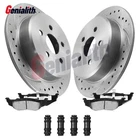 For Chrysler Sebring 2005 2006 Rear Drilled Brake Rotors Ceramic Pads 10.63 in Rear Drilled & Slotted Brake Rotor + Ceramic Brake Pad Kit Fits Driver and Passenger Sides 10.63 in (270mm) Rear Brake Rotors, Pls check your rotor size before ordering. 5 LUGS, 270 mm Rear Rotor. Kit Includes: 2x Rear Drilled & Slotted Brake Rotors - 5375 2x Rear Ceramic Brake Pads (Hardware Included) - 641 FIT: MAKE MODEL YEAR RANGE SPECIFIC DETAILS CHRYSLER CIRRUS 1995 - 2000 Rear Disc Brakes CHRYSLER PT CRUISER 2001 - 2002 Rear Disc Brakes CHRYSLER PT CRUISER 2009- 2010 Rear Disc Brakes; Excludes Turbo CHRYSLER SEBRING 1996 - 2000 Convertible Models ONLY; Rear Disc Brakes CHRYSLER SEBRING 2001 - 2006 Convertible and Sedan; Rear Disc Brakes DODGE NEON 1995 - 2005 Rear Disc Brakes; Will Not Fit SRT-4 DODGE STRATUS 1995 - 2006 Sedan; w/ Rear Disc; 10.63 inch (270mm) Rear Rotor PLYMOUTH BREEZE 1996 - 2000 10.63 inch (270mm) Rear Rotor; Rear Disc Brakes PLYMOUTH NEON 1995 - 2001 10.63 inch (270mm) Rear Rotor; Rear Disc Brakes Brake Rotor Size: Rotor Outside Diameter: 10.63 in (270mm) Discard Thickness: 0.4 in (9mm) Over ALL Height: 2.4 in (60mm) Pattern Circle Diameter: 3.9 in (100mm) Pilot Hole: 2.3 in (57.5mm) Bolt Pattern: 5- Ø100 Bolt Hole Quantity: 5 Manufacturer Part Number: 4509553,04509553AB,04509553AC,05085651AA,4509553AB,4509553AC,5085650AA,5085651AA,BD125419,BD126152,04762669,04773265,04863784,05012651AA,05019767AA,05083071AA,05114424AA,4762669,4773265,4863784,5012651AA,5019767AA,5083071AA,5114424AA,V2013767,MX641,MX7438A,PD641,PD7438A,ZD641,ZX641 Shipment All orders will be shipped within 2 working days. All orders from 48 states in the mainland United States will be shipped free of charge through UPS or Fedex at our discretion. Orders outside of the 48 states of the mainland United States (Alaska, Hawaii, Puerto Rico, US territories, or international) will not be shipped. Please be note that when you order two or more items, we might ship them separately in different packages. We ship from New Jersey / Houston / California. We will choose the nearest warehouse according to your address, if some warehouses are out of stock, we can ship from another warehouse only. Return Customers must contact Genialith-Zone within 60 days of receiving the goods to approve any return or exchange. If the customer purchases multiple or incorrectly purchases the wrong product, the buyer is responsible for the return shipping cost. Any replacement made due to Genialith-Zone transportation errors will not result in any restocking or shipping costs. Payment Visa/Paypal/Payoneer and all forms of credit card are the accepted forms of payment. Please use the eBay checkout system when paying for your order. Immediate payment is required for all orders. We do not offer local pick up service. About US Drilled and Slotted Disc Brake Rotors Distributed by Genialith-Zone Genialith-Zone High Quality Materials Performance Brake Rotors are engineered for maximum performance, reliability, and durability. Drilled and slotted rotors will grab more bite to the brake pads giving you shorter stopping distance especially in wet weather. The drilled holes will reduce the heat that builds on the rotor. The slots on the rotor removes brake and road debris and prevent pad glazing. Warranty 1.We offer ONE-TIME 5-year warranty for you in the situation where the parts fail due to manufacturing defects during intended use during a 5-year period after purchase. 2.Please be advised that this warranty does Not apply to any part if it has been: Altered, misused, or improperly-installed; Installed on a vehicle for which it was not designed; Installed on a racing or high performance vehicle, or vehicle with modified suspension/rims/tires. 3.Please understand that we are not able to offer reimbursement for labor, mileage, car rental, or any other costs involved in installation or re-installation of the auto parts in question. For Chrysler Sebring 2005 2006 Rear Drilled Brake Rotors Ceramic Pads 10.63 in Rear Drilled & Slotted Brake Rotor + Ceramic Brake Pad Kit Fits Driver and Passenger Sides 10.63 in (270mm) Rear Brake Rotors, Pls check your rotor size before ordering. 5 LUGS, 270 mm Rear Rotor. Kit Includes: 2x Rear Drilled & Slotted Brake Rotors - 5375 2x Rear Ceramic Brake Pads (Hardware Included) - 641 FIT: MAKE MODEL YEAR RANGE SPECIFIC DETAILS CHRYSLER CIRRUS 1995 - 2000 Rear Disc Brakes CHRYSLER PT CRUISER 2001 - 2002 Rear Disc Brakes CHRYSLER PT CRUISER 2009- 2010 Rear Disc Brakes; Excludes Turbo CHRYSLER SEBRING 1996 - 2000 Convertible Models ONLY; Rear Disc Brakes CHRYSLER SEBRING 2001 - 2006 Convertible and Sedan; Rear Disc Brakes DODGE NEON 1995 - 2005 Rear Disc Brakes; Will Not Fit SRT-4 DODGE STRATUS 1995 - 2006 Sedan; w/ Rear Disc; 10.63 inch (270mm) Rear Rotor PLYMOUTH BREEZE 1996 - 2000 10.63 inch (270mm) Rear Rotor; Rear Disc Brakes PLYMOUTH NEON 1995 - 2001 10.63 inch (270mm) Rear Rotor; Rear Disc Brakes Brake Rotor Size: Rotor Outside Diameter: 10.63 in (270mm) Discard Thickness: 0.4 in (9mm) Over ALL Height: 2.4 in (60mm) Pattern Circle Diameter: 3.9 in (100mm) Pilot Hole: 2.3 in (57.5mm) Bolt Pattern: 5- Ø100 Bolt Hole Quantity: 5 Manufacturer Part Number: 4509553,04509553AB,04509553AC,05085651AA,4509553AB,4509553AC,5085650AA,5085651AA,BD125419,BD126152,04762669,04773265,04863784,05012651AA,05019767AA,05083071AA,05114424AA,4762669,4773265,4863784,5012651AA,5019767AA,5083071AA,5114424AA,V2013767,MX641,MX7438A,PD641,PD7438A,ZD641,ZX641 Shipment All orders will be shipped within 2 working days. All orders from 48 states in the mainland United States will be shipped free of charge through UPS or Fedex at our discretion. Orders outside of the 48 states of the mainland United States (Alaska, Hawaii, Puerto Rico, US territories, or international) will not be shipped. Please be note that when you order two or more items, we might ship them separately in different packages. We ship from New Jersey / Houston / California. We will choose the