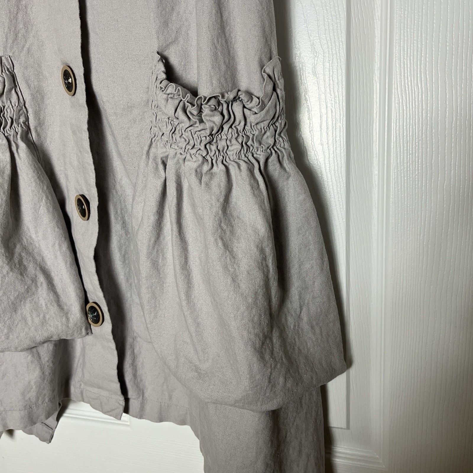 NWOT For Cynthia Linen-Blend Sark Bite Hem Shirt Dress w/Patch Ruched Pockets Medium