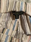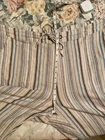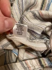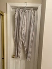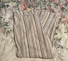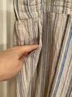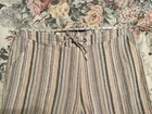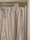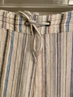 Made of a blend of 55% linen and 45% viscose, these pants have pockets and a drawstring closure. There is elastic in the waistband, too. Multicolored striped pants. Approximate measurements are in the photos. Please review for an accurate fit. Approximately 41” waist, 14” rise, and 29” inseam. NICE preowned condition.