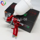 For Devilbiss Spray Gun GTI PRO LITE Red 1.3mm or 1.4mm or 1.8mm T110 or TE20 LVMP Car Pain Tool Pistol GTI Pro Lite almighty environmental protection top coat spray gun MADE IN CHINA We are a professional manufacturer with more than 25 years of experience !!! You Need To Leave Us Message which Nozzle CAP and SIZE You Need !!! !!! If you didn't Specify we will send you by Default: Spray Gun with 1.3mm and T110 cap!!! ! ! ! Available Caps: T110 and TE20 ! ! ! ! ! ! Available Nozzle Sizes: 1.3mm / 1.4mm / 1.8mm ! ! ! For the global water-based paint market Apply to paints and varnishes Classic comfortable handle, showing incredible handling and balance Innovative trigger design, handle smoothly and comfortable, very easy to clean and maintain The forged and pressed gun body is compact to prevent paint jumping Extremely delicate mirror surface treatment, the gun body looks Like a fine work of art Nozzle CAP: T110 or TE20 ("YOUR CHOICE") Nozzle SIZE: 1.3mm or 1.4mm or 1.8mm ("YOUR CHOICE") Color: Red Nozzle Material: Highest quality level of stainless steel Suggested Air Pressure:3.0 bar (43PSI) Max pressure:10 bar (145PSI) Cup Volume: 600ml Pattern Width: 15-25cm Air Consumption: When come into 2.0 bar air, the air consumption is 270L/min Package include: The complete anodized gun LVMP with nozzle size: "YOUR CHOICE" Nozzle Cap: "YOUR CHOICE" Color: Red Gravity cup - 600 ml Torx driver/screwdriver Cleaning brush