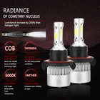 Specification: Plug Type: H13/9008,Hi-Lo Beam LED Quantity(each bulb): 3pcs* Bridgelux COB chips Operating Voltage: DC 9-32V(fit 12V,24V vehicles) Color Temperature: Pure White 6500K IP65 rated water and dust seal,over 30000hrs lifetime Beam Angle: 270 degree@low beam,360 degree@high beam Material: Aviation 6063 aluminum profile Operating Temperature: -40-80 degree Celsius Usage: headlight,HighLow beam Descriptions: (2pcs/set)H13 Bridgelux COB Hi-Lo Beam LED headlight conversion kit Latest Bridgelux COB chip (USA) light source,3 luminous faces(270/360 degree) no blind zone Engineering beam pattern design throw more light on road evenly at appropriate angle without foggy light Xenon white light reflect road paint/signs better to show clearer road situation during night driving 270 degree low beam angle with cut-off line,will not dazzle oncoming traffic All-in-one heat conduction+high speed mute fan system keep the light bulb in appropriate working temperature Built-in constant current CPU, instant full brightness without start-up relay Two-way heat dissipation channel 1.All-in-one aluminum profile as heat conduction system, 360 degree heat radiating 2.High speed mute fan (12000R/Min),high Air flow for faster cooling rate Package Included: 2x H13 LED headlight bulbs