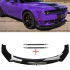For Dodge Challenger SRT SXT Front Bumper Lip Spoiler + Strut Rods Glossy Black