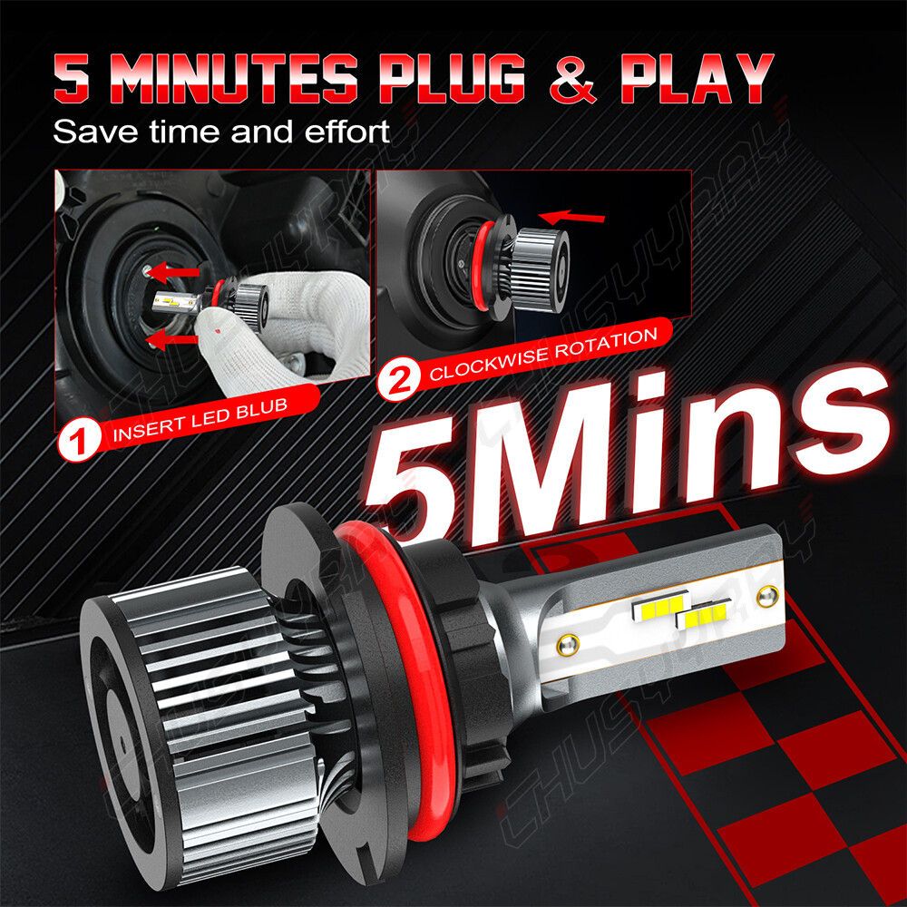Features: 【Perfect Beam Pattern 1:1】 these led bulbs perfectly mimic the original halogen beam pattern, delivering wider angle and farther range light on the road. No glare to oncoming traffic, no dark spots, safe and reliable. 【Easy Installation】 Easy to install, plug and play.easy to install without any complicated tools.does not require complicated operations.Save your time and energy.After installation and use, it helps prevent accidents and improve road safety in driving. 【 High Brightness】 the led headlight bulbs provide up to 500% more light and 6500K white clearer vision while driving at night, ditching your yellow and dim stock lights.Light up your road but no blind others drivers. They have a perfect beam pattern without any dark spots or foggy light. 【50,000 Hours Long Lifetime】 Silent fan design + bottom hollow cooling technology, this led combo ensures durability and superb performance. Longer lifespan. 【Turbofan and Waterproof Design】 The LED driver was built into the bulbs. The smallest heat system in the market, including cooling fan and cooling aluminum parts. 12,000 RPM high speed turbo fan will help the heat dissipation. In this way can ensure the bulbs lifespan last more than 50,000 hours. Our led headlight kit design IP67 waterproof. It can work underwater! Rainproof , it also shockproof. Buy it confidence. Specifications: △ LED replacement bulbs are engineered for superior performance, exceptional looks, and increased safety. △ Especially designed for upgrading the Headlight bulb △ Beam Type: High-Low Dual Beam+Foglight △ Color Temperature: 6500K White △ Wattage: 60W/Bulb △ Lumens: 10000LM/Bulb △ Working Voltage: DC 9V to 36V △ Waterproof Level: IP67 △ Material: Aluminum alloy △ Operating Temperature: -40°C ~ +80°C △ Warranty: 5 years warranty △ Lifespan: > 50,000 Hours Why Use LED Headlight Bulb? △ If you find this listing, you are must looking for brighter white headlight bulbs with an excellent beam pattern for upgrade.Congratulations, you find what you want now! △ LED headlight bulbs is a successful replacement for Halogen bulbs, it is brighter and more reliable,perfect for high-beam (and also low beam, fog, & driving lights) use.With it, you will get much better night driving, and also, much better seen during the day. Package Included: △ 2x LED Headlight High-Low Beam Bulbs △ 2x LED Fog Light Bulbs Install Caution: △ As a safety precaution, make sure that the car has had time to cool down properly before starting the installation process. △ Put the vehicle into park or make sure it is securely in gear. △ Make sure to have the ignition turned off and the keys removed. △ Be careful to avoid burns, especially when turning on or off the vehicles lighting. △ Be careful to avoid crushing or cutting the bulbs. Also make sure to not touch the bulbs with your fingers, as this will cause blotting. △ Fully examine the connection of the contact points, ports and the wires as faulty connections can cause lighting problems. △ Make certain that the end of the bulb does not come in contact with the interior light shield of the headlight when adjusting the bulb. △ Please install car headlight dust cover to ensure the normal operation of the lamp (to prevent dust and small ribbons to reduce the chances of bulb cooling fan broken to ensure the normal operation of the cooling system) Note: After installation, dust prevention measures must be done, LED lamp life depends on the cooling performance is good or bad. The lamp heat mainly active cooling (fan-cooling based, supplemented by the whole aviation aluminum heat dispassion ) as the main cooling method, the life of the fan in lamp bulb directly affects the life of LED lights. Important Notice: This model don't come with CANBUS Error Free function.The load equalizer (canbus)can be used to eliminate the hyper flash (higher frequency turn signal) caused by LED replacement bulbs in some vehicles.Corrects hyper flashing and bulb-out warning caused by LED replacement bulbs.