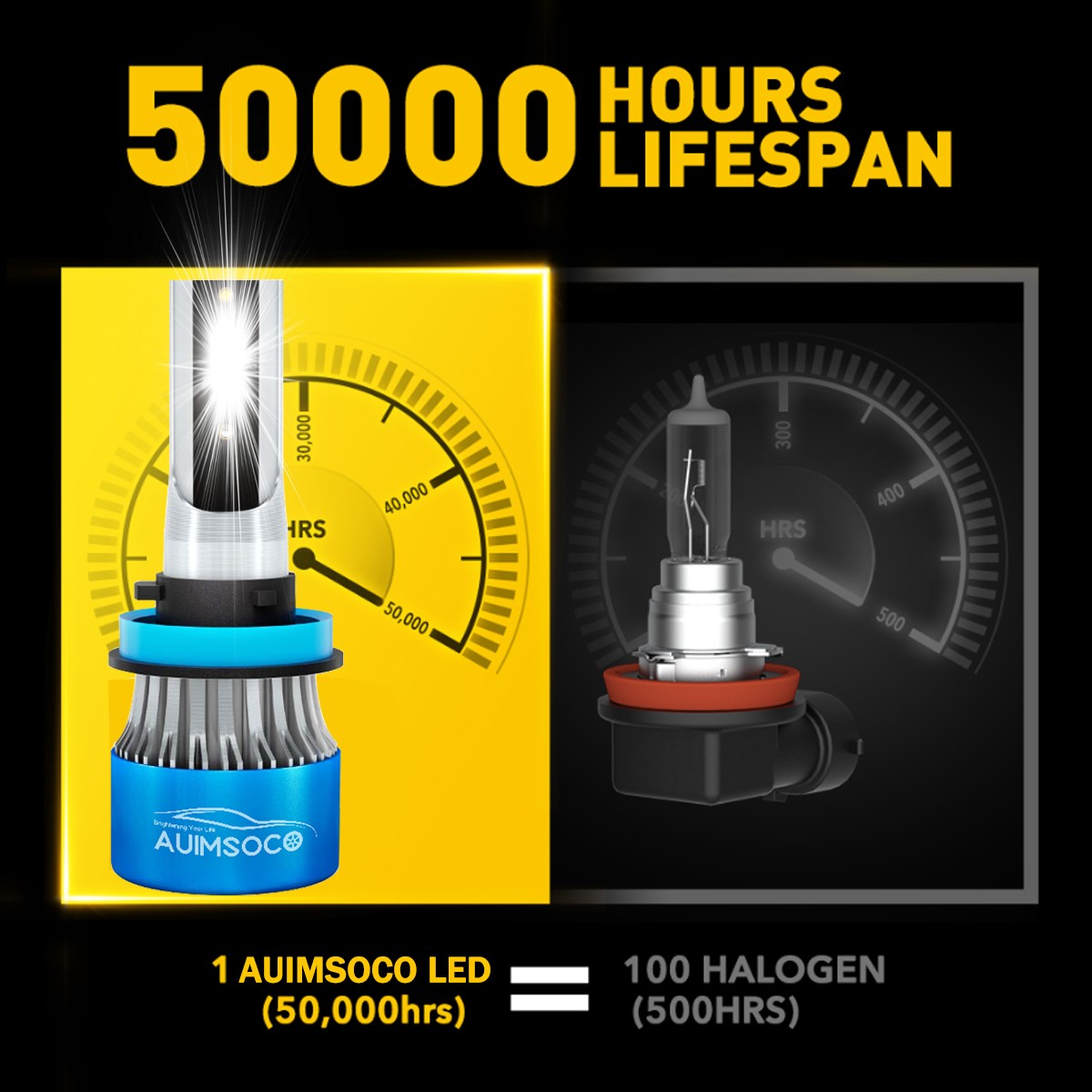 AUIMSOCO Authorized Store on eBay Q2 Series Super Bright LED Headlight Bulb Conversion Kit 1x Pair 9005 Headlight Replace Halogen High Beam 1x Pair H11 Headlight Replace Halogen Low Beam Please read before placing order: For most cars, this led Headlight is plug and play, but for some other cars such as Mercedes Benz, VW Jetta/Passat, Kia, Hyundai, due to the factory halogen headlamp with special adapter socket, in this case when you replace aftermarket LED headlight bulb, you need to use(buy) special adapter socket, so we can double check it and recommend the correct one for you. Description for Q2 Series The smallest size of all AUIMSOCO different series LED bulbs to fit over 99% vehicles without modifying the factory dust cap. The bulbs are also designed as small as it can to fit the assembly with bulb hole off the center. Q2 Series is one of the smallest LED lights on the market, with built-in driver which can perfectly fit most vehicles without installation issues. Key Features of Q2 Series Lower power consumption, More lighting effect. 100W/Per Pair, 10000LM/Per Pair. The Q2 Series was upgraded from CSP chip to 12pcs chips on each bulb to provide more lighting effects in lower power consumption. It can be 600% brighter than your factory halogen bulb and more lighting effect in 100 wattages (per set). 360° adjustable extremely beam pattern. The mounting collar of the bulb can be softly adjusted to fit different headlight housing with different angles. The light pattern could be easily adjusted and looks just like a halogen one but is brighter and clearer in an LED platform. The beam pattern is set correctly by default but it's free to adjust by rotating the back of the cooling fan. There are zero dark spots and the pattern is focused to near perfection. Compact design, extremely small size, ane easy to install. The LED driver was built into the bulbs,including cooling fan and cooling aluminum parts. Only 2.95in long, 0.55in wide! The Q2 Series is designed to be as compact as it can. Just simply take out the halogen bulbs from the housing then put the led bulbs in and the dust cover back. Not only the smallest, but also more stable! The led bulb with the all-aviation aluminum body, hydraulic fan and built-in intelligent IC and temperature control system can perfectly solve the problem of light decay and dead lamp caused by the highest temperature of LED car light to ensures it will last longer. Fog Light Specification: Bulb Size: H16 LED replacement bulbs are engineered for superior performance, exceptional looks, and increased safety. AUIMSOCO LED chip high power Usage: LED Fog Light Voltage: DC 12V-24V Power: 30W/per pair Lumen: 3000LM/per pair Color Temperature: 6500K LED Chips: AUIMSOCO customized LED chips Material: Heatsink aluminum shell Fanless: yes, no noise Lifespan: 50,000 hours Waterproof Rate: IP67 Warranty: 5 years warranty Color Temperature: 6500K Xenon White Lifespan: 50,000 working hours, stable quality, long service life Aluminum heat sink design,built-in automotive circuit to prevent electronic interference. The model is the same as factory light, no need to change car wire rute,just Plug and Play, NO modification required Energy saving, environmental protection, Stable performance, through strict test, Use safer driving in the car Need Canbus decoder/ resistor? The Q2 series LED bulbs can work well on most vehicles. But when it's changed to LEDs to cause the flickering or error code on your vehicle, you will need one pair of the decoder to cancel the error. AUIMSOCO Warranty & Return: 5 Years Warranty. (If any quality problem we'll send free for replacement) Free return and free return shipping label can be provided if needed (contact us). Please refer to our return policy for details. Package Includes: 1x Pair 9005 High Beam 1x Pair H11 Low Beam 1x Pair H16 Fog Light Randomly send new and old packaging boxes On Sep 29, 2025 at 03:57:44 PDT, seller added the following information: