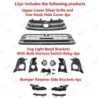 Fit for : 1 Set (12 PCS) Includes:(See more pictures for details) 1 Pc front upper gloss silver grille 1 Pc front lower gloss silver grille 2 Pcs front gloss silver tow hook hole cover 2 Pcs fog lights with bulb,switch,relay and Harness 2 Pcs fog light bezels 2 Pcs front bumper brackets 2 Pcs front bumper side brackets Item OE number : 53101-0E230;53102-0E070;53106-0E010;53105-0E010;52040-0E030;52030-0E030;81220-02160;81210-02160;52146-0E080;52145-0E080;52536-0E030;52535-0E050 Installation : Perfect fit direct replacement, no modifications required. Installation manual not provided; we recommend professional installation. Item's-Features : Superior quality kit 100% brand new Made from high-quality materials Excellent replacement part, no modifications needed Other parts fit for