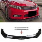 For Honda Civic SI Sedan Coupe Front Bumper Lip Spoiler + Strut Rods Gloss Black