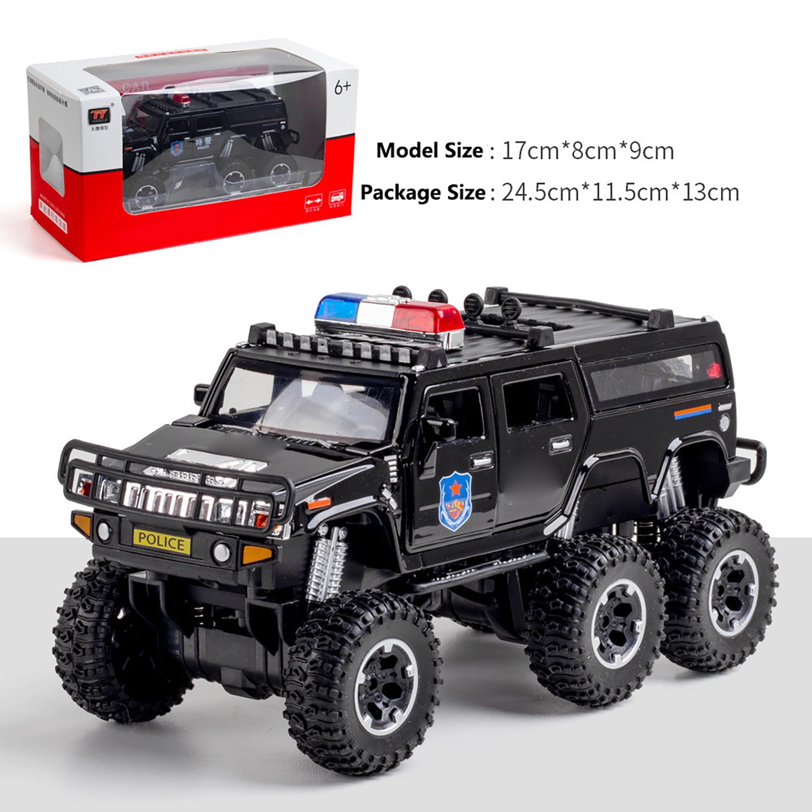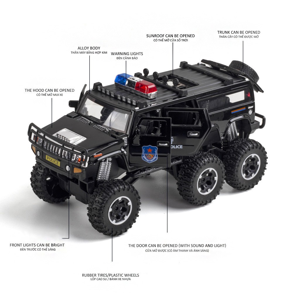 SAFE & SECURE SHOPPING 100% SATISFACTION GUARANTEED FAST SHIPPING For Hummer H2 Sound&Light Alloy Police Lengthen Pickup Car Model Vehicle 1/32 Product Description Features: Brand new and high quality car model Police car model meet your passion for military collectibles with beautiful design. An accurate scale model car with sound and light and pull back function for collectors and enthusiasts. Plane model can be placed in the living room, bar, company, Coffee hall as home decoration. Specifications: Material: Alloy + Plastic+ Rubber( Body is alloy, underbody is plastic and the wheel is rubber.) Model: H2 Police lengthen Pickup Car Model size: 17*8*9cm Model net weight: 420g Packing size: 24.5*11.5*13cm Package weight: 500g Package Includes: 1* 1:32 H2 Police car Model Note: Color might be slightly different due to the color calibration of each individual monitor. Please allow slightly measuring deviation due to manual measurement. Copyright © 2022 Tongtool
