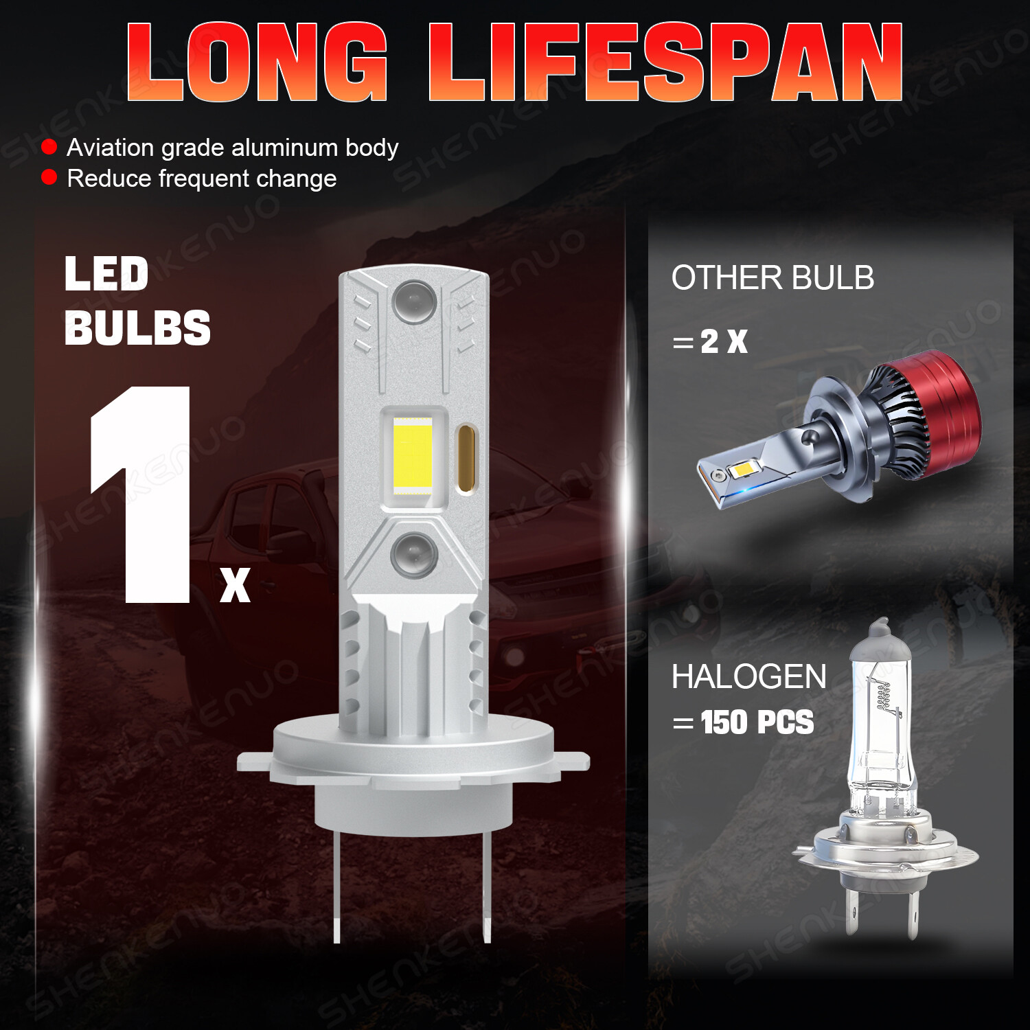 Item Description H7 LED Headlight Bulbs Wireless LED Headlight These bulbs are all in one designed, mini sized, 10,000lm bright per set, 6500K, plug and play, let you see far and wider at night without blinding oncoming drivers. High Brightness - H7 LED headlight uses customized 3570 CSP chips, 10000LM per set, 500% brighter than halogen headlights. 360 Degree Lighting - The LED interval of the bulb is about 0.03in, ultra thin designed. 360 degree illumination and no dark spots. 6500K Cool White - Bright white light gives better visibility. No foggy light. Perfect Beam Pattern - The shape and size of the LED chips are close to the filament of halogen bulbs to ensure a perfect beam pattern. CANBUS Free - Built-in intelligent IC driver, solves most computer system problems, compatible with most vehicles. Dual Beam Design - High beam and low beam (Hi/Lo) in the same bulb, suitable for hi/lo beam replacement. About this item 【500% Brighter】 H7 LED headlight bulbs are designed with double-sided SHENKENUO CSP LED chips, 6500K cool white, 22,000Lumen per set, 500% brighter than stock halogen bulbs, a perfect upgrade for halogen headlights. Allows driver get a farther, brighter, and clearer vision when driving at night 【50,000+hrs Lifespan】 The advanced CSP LED technology effectively reduces the energy consumption of H7 led headlight during operation. Premium aviation aluminum and 12,000RPM high-speed silent cooling fan effectively pull the heat away from the LED chips, which ensures long service life of up to 50,000 hours 【1:1 Beam Pattern】 H11 H9 led headlights 1:1 simulate the beam pattern of halogen bulbs, use ultra-thin 0.03in baseboard to ensure 360° lighting without black spots. And the emitted light beam is focused on the ground, will not cause glare to oncoming drivers 【10min Installation】 Unlike other LED lights, H11 H9 headlight bulbs have no external driver and connector, fully all in one. That makes the bulbs almost the same size as the halogen bulb. Due to the wireless design, installation is a breeze, just plug and play 【99% CANbus Ready】 Built-in anti-flicker CANbus unit, H11 LED headlights are compatible with 99% of vehicles’ systems, no polarity, no radio interference, and error-free. Some sensitive models may require resistors Parameter: Model: H7 Power:30W/per bulb, 60W/per Set Lumens:5000LM/per bulb, 10000LM/per Set Color Temperature:6500K White Light source: CSP Beam Type:High/Low Beam Certified by:CE & ROHs Voltage: DC 9V-32V Warranty:1 YEARS Lifetime: More than 50000 hours Placement on Vehicle: Front Applicable Used as a: Headlight Suitable For Pickup, Wagon, UTB, Cab, ATV, SUV, Jeep, Truck, Bus etc. Package include: 4x H7 LED Headlight Install Caution: 1. As a safety precaution, make sure that the car has had time to cool down properly before starting the installation process. 2. Put the vehicle into park or make sure it is securely in gear. 3. Make sure to have the ignition turned off and the keys removed. 4. Be careful to avoid burns, especially when turning on or off the vehicles lighting. 5. Be careful to avoid crushing or cutting the bulbs. Also make sure to not touch the bulbs with your fingers, as this will cause blotting. 6. Fully examine the connection of the contact points, ports and the wires as faulty connections can cause lighting problems. 7. Make certain that the end of the bulb does not come in contact with the interior light shield of the headlight when adjusting the bulb. Shipping Policy Payment Method Returns Policy Warranty Shipping Policy 1) Item Located in UK , We will ship all orders asap from our UK warehouse, All shipment will ship by Royal Mail.Not include small package which less than £5. 2) Item Located in China ,We will ship from China Warehouse.( No service on Weekend and public holidays). 3) We will ship out all orders as soon as possible after payment verified, please allow up to 1-4 business days for delivery. 4) Delivery time within the UK. is usually just 3 to 6 business days, however in rare cases it could take 6 to 7 business days. Why Choose the UK Stock? 1. UK Local Shipping, No Extra Customs Cost to the UK. 2. Fast Delivery: 3-6 Working days Delivery. 3. Best After-Sales Service!!! Payment Method We accept PayPal only. Payment must be made within 4 days of auction closing. (Non-payment may result in a UPI