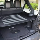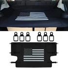 Rear Trunk Cargo Luggage Shade Cover w/ US Flag for Jeep Wrangler JK JKU 2007-2018 Product Feature: Fitment: Fit for 2007-2018 Jeep wrangler JK JKU 4 Doors. Please verify that it is suitable for your vehicle. Style: US Flag pattern. Multiple buttons design. A strong visual impact, enhance offroad. Function: Flexible configurations for your cargo area. Conceals cargo make sure security. Highly weight capacity. Material: Dirt resistant materials. Solid and durable. Upgrate with net. Made Of high quality water-repellent durable nylon with structural form-fitting stiffeners. Installation: Easy installation. No-drilling installation, fasten to factory mounting holes. Don't need tailgate bar. Product Description: Fitment: For Jeep Wrangler JKU Sports/ Sahara/ Freedom/ Rubicon Unlimited 2007-2018 ( Don't fit 2-Door&2018 Wrangler JL ) Choosing Cargo Cover to upgrade your Jeep Wrangler JK JKU! High-quality material of the cover curtain, buckle and tie-down D-rings makes it have a long-lasting service time. The imported wearable nylon is effective for water and scratching protection, which ensures the cargo cover can be rolled away anytime for a full trunk. The aluminum alloy buckles with canvas belts strengthen the bearing capacity, which is more flexible to press for installation. And 6pcs tie-down D-rings made of high-end aluminum, is quite durable and you might need a set of hardtop bolts and nuts to anchor down the tie-down D-Rings. To ensure compatibility, please purchase Hardtop/cover Quick-Release/ Removal Thumb Screw + Nut + Washer Kit. Boosting refrigeration performance leads to a more environmental lifestyle. With trunk cover, the need of refrigeration space is reduced, which greatly improves the cooling effect and be more energy-saving. A absolutely necessary for your beloved Jeep Wrangler JK JKU! The effective protection of personal items privacy and security, to prevent the rear seat from snooping. This cargo cover is nicely for folding, so if you want full or half coverage to change your cargo area with great flexibility. * And you can roll it away anytime for an open cargo space. With this trunk cover, your trunk is divided into two layers, easy to storage items, making full use of the space. Package Details: 1 x Cargo Cover