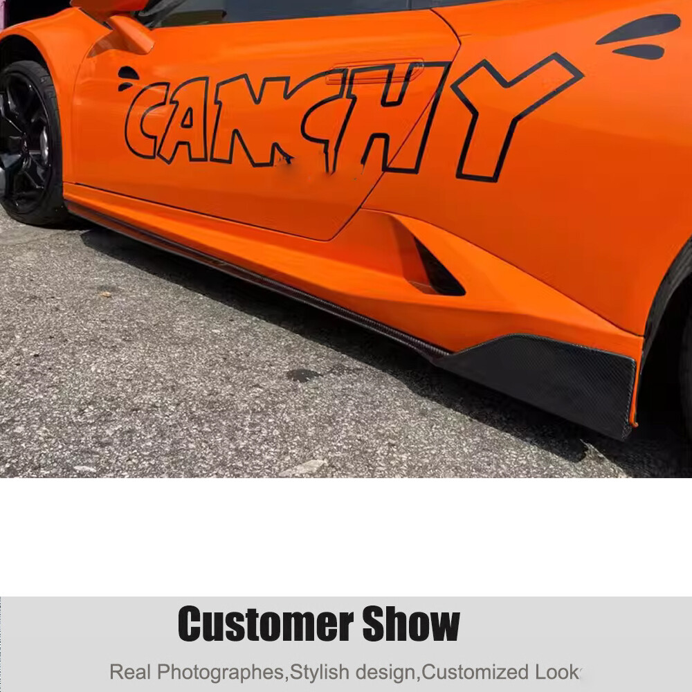 Features: 1.Fit For Lamborghini Huracan 2014-2017 2.Made of light weight & top-grade durable 3K carbon fiber material with polished and shinning surface, UV-Protected Clear Coating, make your car more luxurious 3.Make the vehicle look like a more performance car, it adds more down force and helps aerodynamic, dramatically improve styling & appearance 4. Maintain the stability of the vehicle when in high speeds, reducing wind resistance, saving fuel and keeping safety 5. Easy installation, Self-adhesive glue tape & self-tapping screws included,Excellent fitment 6.Embedded packaging, damp-proof, shockproof & crashproof Specification: Color: Carbon Fiber Black Material: Carbon Fiber Process: Vacuum molding Pattern: 3X3 twill weaven Packaging: Carton box Installation: Free glue tape & screws For Lamborghini Huracan 2014-2019 Real Carbon Side Skirts Extension Lip Spoiler Features: 1.Fit For Lamborghini Huracan 2014-2017 2.Made of light weight & top-grade durable 3K carbon fiber material with polished and shinning surface, UV-Protected Clear Coating, make your car more luxurious 3.Make the vehicle look like a more performance car, it adds more down force and helps aerodynamic, dramatically improve styling & appearance 4. Maintain the stability of the vehicle when in high speeds, reducing wind resistance, saving fuel and keeping safety 5. Easy installation, Self-adhesive glue tape & self-tapping screws included,Excellent fitment 6.Embedded packaging, damp-proof, shockproof & crashproof Specification: Color: Carbon Fiber Black Material: Carbon Fiber Process: Vacuum molding Pattern: 3X3 twill weaven Packaging: Carton box Installation: Free glue tape & screws included Package Included: 2PCS Carbon Fiber Side Skirts, Self-Tapping Screws About Payment and tax About Return policy About shipping About us Contact us About Payment and tax 1. We ship to your eBay address.Please make sure your eBay address is correct before you pay. 2. Multiple Payment Methods Available: Credit Card, Debit Card, Gift Card, Apple Pay, Goggle Pay, PayPal and PayPal Credit 3.Your must complete the payment within 8 days or Ebay will automatically open unpaid item case For US Buyer: The invoice value of each item is less than 800USD ,so you no need to pay any tariff . NON-US Buyer Note: Most countries are tax free based on our invoices, if tax is required, which will be buyer's responsibility. About Return policy 1.Customer satisfaction is our top goal. We believe our items are so outstanding. All products are quality checked. They are new and in good condition when shipped to our customers. We are convinced you will be happy with your Purchase. 2.If product is defective or damage upon arrival, or wrong product shipped, please contact us immediately. Returns accepted within 30 days of delivery date and item must be in original new condition, not worn or altered in any way with attached tags & wrap. Otherwise deal is final. Return shipping must be paid by buyer. 3.Please contact us first if you have any problems/questions/concerns. We will be happy to resolve any issues you may have in a cordial and friendly manner. 4.We offer refund or exchange within 30 days after buyer received damaged, incorrect or defective item. Please always contact us to resolve any problems, we will do our best to satisfy you. Thanks very much. About shipping The shipping fee is only for the mainland of each country,it does not include the overseas territories,such as Virgin Islands (U.S.) , Puerto Rico, French Reunion Island, etc .But on ebay,when buyers from Puerto Rico, the shipping fee is equal to United States, it is NOT correct,please contact us for correct shipping fee, or we will cancel the order.Sorry for the inconvenience,and thanks for your cooperation. 1. Please contact us if we have not specified the shipping fee to your country. 2. Package will be shipped from China,usually it will be delivered in 3-15 business days to most countries. 3. If you want to upgrade the shipping,please contact us before making payment,we will revise the shipping fee. About us 1.Powerful professional factory to ensure to provide best quality Products. We are specilized in designing,developing and producing carbon fiber,PU,FRP car body parts, and interior and exterior trims for Germany & American & luxury super cars. 2.We sell them directly to ensure give you best price at best quality.We have distributors from all over the world,Europe,US,Middle East,South Afria etc... 3.Our company is one of the earliest and leading auto parts manufacturer in China,established in 2002. We had more than 15 years of experience in overseas business. Contact us 1.We are trying our best to explain all details of the products here! If you have any question, please feel free to contact us by Ebay message, and We will get back to you within 24-48 hours. 2. Customer satisfaction is our NO.1 priority. If you are not happy with the item that you purchase, please contact us first. We will try our best to solve the problem with you. Please leave us a positive feedback if you receive the item. Please do not leave negative or neutral feedback without any contact.If you haven't received item in 30 days, please contact us . We appreciate your business. Happy Bidding & Have a nice day! 3.Working hours: From 8 a.m. to 6 p.m. from Monday to Friday. From 8 a.m. to 12 a.m. on Saturday morning Rest time: Saturday afternoon and Sunday