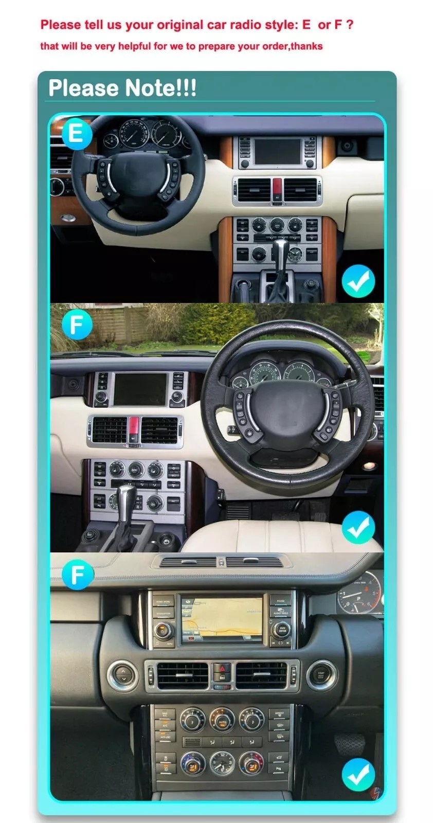 HUANYI CAR RADIO About this item 【 Car Radio Stereo for Land Rover Range Rover Vouge L322 V8 2005-2012 】This Android car radio is suitable for Land Rover Range Rover Vouge L322 V8 2005-2012. UPGRADED Android 14 operation system + 8 Core CPU + 4GB RAM +64GB ROM with enhanced fluency, compatibility and privacy. Equipped with a 10.25-inch large screen, you can better control this machine. 100% standard size, no need to purchase additional accessories, just follow the installation instructions to make your car a new look. 【 Rich Driving Experience 】 Range Rover Vouge car radio MP5 player Supports BT and hands-free calling, FM Radio, USB, AUX IN, music player, video player, steering wheel control and back-up camera. You can save all favorite stations and listen to news, music and program anytime. This device support original steering wheel button study, more convenient to realize hands-free remote control. 【 Wifi & 4G Network 】Support the use of 4G network or wifi connection to access the Internet. You can use it for online navigation or watching online videos. You can also download various apps in the app store, such as YouTube, Netflix, Facebook, etc., to enjoy the fun of surfing the Internet. 【 Car Navigation 】 GPS radio navigation for car search satellite strongly high-precision navigation and positioning GPS + GLONASS, Support Online and offline maps, Each of auto radio is born with a built-in GPS, God's Positioning System, Support Apple Maps, Google, Waze and other maps all in way that allows you to stay focused on the road. 【 Carplay and Android Auto with Voice Control 】 This car stereo is compatible with Apple CarPlay and Android Auto, It has the latest voice control technology, just connect with your smartphone that makes it possible for you to access map navigation, phone contacts, email, notification, music and more with the help of Siri/Google Assistant while you stay focused on the road. 【 HD Night Vision Backup Camera 】 The Bluetooth car stereo is equipped with HD and 170° viewing angle waterproof backup cam with night vision function, night vision effect is better. The rear camera input automatically displays the image on the unit's screen when reversing your car. easy operation and help drive safe and easier parking. the camera wires are connected to the reversing lights and are very easy to install. 【 Kind One-on-one Service 】If you are not sure if your vehicle model is suitable for installation, you can send us a picture of your car's central control before purchasing, and our engineers will confirm and reply to you as soon as possible. If you have any other questions, you can also contact us at any time. Product Description For Land Rover Range Rover Vouge L322 V8 2005 -2012 Support Steering Wheel Control, Bluetooth, Wifi, GPS navigation, AM/FM Radio. Support the Wireless Carplay +Android Auto Support the DSP function to improve the sound quality Bluetooth Support to connect with Android phone or iPhone Bluetooth. Take Phone Call Hands-Free - Free both hands by dialing and listening to a call, on the radio by Bluetooth connection. Watch HD movies The 1024*768 high pixel density provides amazingly vibrant and visual effects while the touch screen offers a remarkable fluid operation. FM-AM RDS Radio The car stereo picks up all of your favorite AM/FM radio with 30 stations for up-to-date music, news, sports, weather forecast. Support GPS Navigation Support for online and offline navigation applications showing real time traffic conditions such as Google Maps, or you can download offline packages to use in Maps support for voice navigation, 2D/3D maps, GPS dual zone function, you can enjoy radio, music while navigating. Support wireless Carplay connection Wireless Carplay : Carplay will run automatically after your iPhone is connected. With Carplay, you can use all the essential iPhone functions on the road, making phone calls, navigating, and playing music with Siri's help. DSP Amplifier 16-band EQ control Heavy bass reinforcement Speaker Control Bass filtering and other functions Multi-Functions Support mirror link Wifi connection GPS navigation Steering wheel control, etc Support Massive APPS Download Play Store Various APPs can be downloaded. Support SWC The Steering Wheel Buttons Can Control The Volume Up And Down, Up And Down Song Switching, Bluetooth Call Answering Hang Up And Other Functions Comparison Before And After Installation Apple Carplay: Carplay will run automatically after your iPhone is connected. With Carplay, you can use all the essential iPhone functions on the road, making phone calls, navigating, and playing music with Siri's help. Rear View Camera: Support factory OEM and after-market backup camera, The system will power on the camera automatically when you reverse and display the image on the touch screen, working as parking assistance, which keeps you safe. LCD Touchscreen Stereo: The double din Bluetooth radio is designed with pixels 1024*768 HD display, you can enjoy responsive touch feeling with your fingers. Support 1080P video playback on the stereo monitor. Steering Wheel Control: Compatible with all factory steering wheel control functions. Easy to switch songs, and channels and adjust the volume to help you to minimize distractions and keep your eyes on the road. Operation System Android 14 operating system CPU/processor PX5/8-CORE RAM/memory 4GB+64GB Radio FM-AM RDS Radio Steering wheel Support Wifi/4G Support Mirror Link Wireless Apple carplay & Wired Android auto Screen HD touch screen Language English German French Spanish Italian Portuguese Japanese etc Please kindly notes : If you received any problem items,please contact us before giving any feedback, we will confirm the problem and reply you ASAP and give a best solution for this,Please don't worry we are responsible for any possible issues. It's our responsibility to solve the problem until you satisfied. Payment Payment Information Immediate payment is re