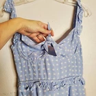 New with tag with tiny tag puncture at armpit area, please see photos for condition. Color: Periwinkle, is like a baby blue Sweetheart neckline Keyhole/Cutout detail with bow tie Ruffle trim Underwired cups Back zip closure with hook & eye Lined, except the cups Non-stretch fabric Fabric content / care instructions in photos Approximate measurements: 14.5" Armpit to armpit 12.5" Waist 18.5" Hips 33" Length Style tags: heart pattern, hearts, dainty, flirty, swiftie, sexy, spring, summer, going out, wedding guest, bridal shower, baby shower, picnic, pastel, pale, feminine, coquette, girly, peplum, ruffles, sleeveless, little, short, bustier, corset, bra top, Valentine's, lover, fairy Ships next business day. Please message with any questions! 798-240515 DS3