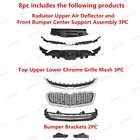 Fit for : 1 Set (8 PCS) Includes:(See more pictures for details) 1 Pc radiator upper air deflector 2 Pc front bumper fascia center support 1 Pc front top black grille with chrome trim 1 Pc front upper black grille with chrome trim 1 Pc front lower black grille mesh 2 Pcs front bumper brackets Item OE number : 20789654;23232813;22995184;22995179;22995188;22986140;22986141 Installation : Perfect fit direct replacement, no modifications required. Installation manual not provided; we recommend professional installation. Item's-Features : Superior quality kit 100% brand new Made from high-quality materials Excellent replacement part, no modifications needed Other parts fit for