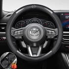 For Mazda 15" Carbon Fiber Genuine Leather Steering Wheel Cover Car Accessories