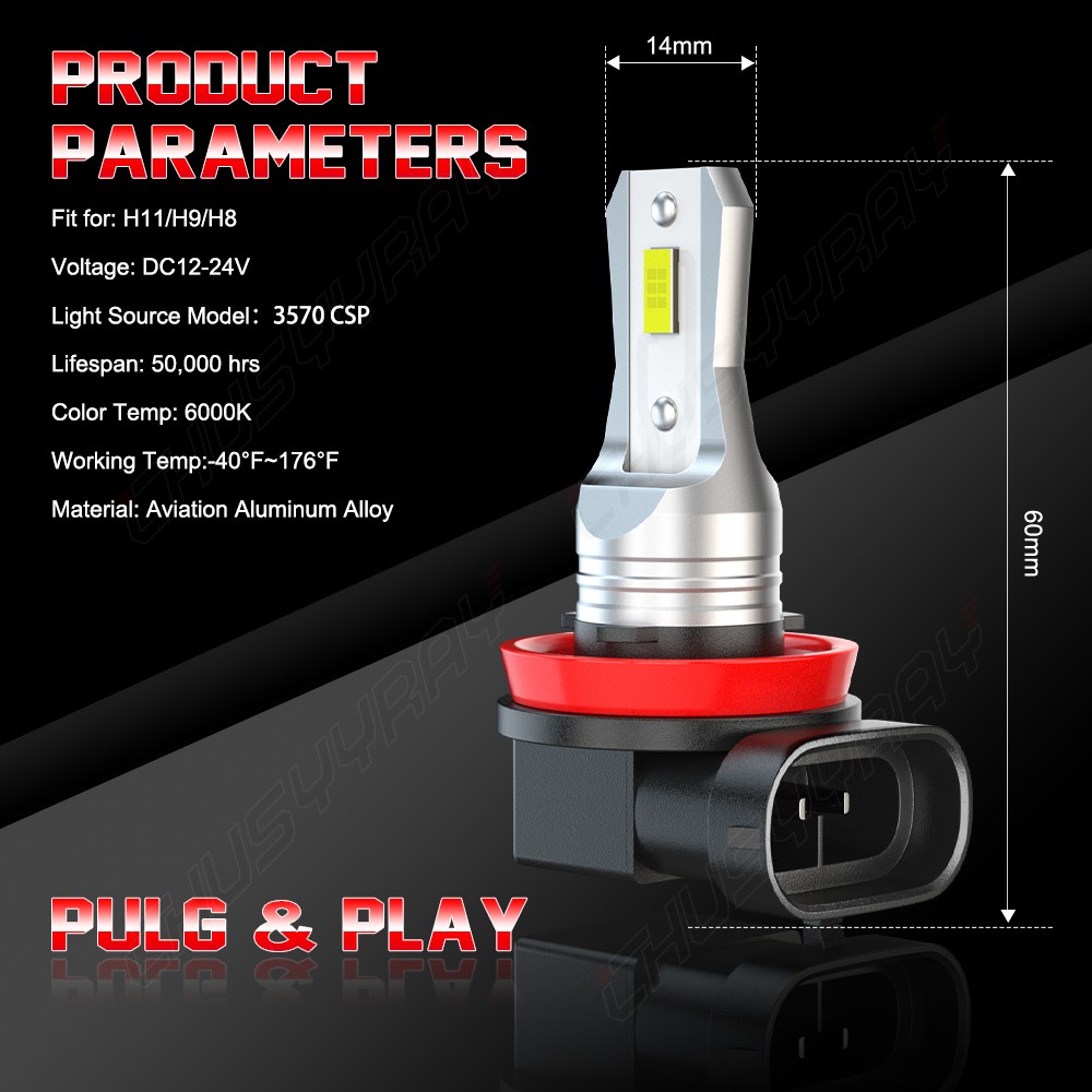 Product Details: 🔥 X3 Series H11/H8/H16 LED Bulbs – 10,000LM Super Bright, 6000K White, IP67 Waterproof – Perfect for Low Beam or Fog Lights! Replace your dull, yellow halogen bulbs with our ultra-bright X3 Series LED bulbs! Designed for H11, H8, and H16 sockets, these bulbs provide 500% brighter light output with a crisp 6000K pure white color, drastically improving nighttime visibility and road safety. 🚀 Key Features & Benefits: ✔ 10,000LM Extreme Brightness – 5X brighter than halogen bulbs for superior road illumination. ✔ Multi-Fit Compatibility – Works as low beam (H11) or fog light (H8/H16) in compatible vehicles. ✔ Advanced Cooling System – High-quality aviation aluminum heat sink for 50,000+ hours of stable performance. ✔ IP67 Water & Dustproof – Handles rain, snow, mud, and extreme weather with ease. ✔ 360° Adjustable Beam Angle – Eliminates dark spots for full, even light coverage. ✔ Premium CSP LED Chips – Higher durability & efficiency than standard LEDs. ✔ Plug-and-Play Installation – No wiring or modifications needed! 🚗 Fitment: Compatible with vehicles using H11 (low beam), H8, or H16 (fog light) bulbs. Check your owner’s manual or current bulb type before purchasing. 📦 What’s Included: 2x H11 LED Headlight Bulbs 💡 Why Buy From Us? ✅ Instant Full Brightness – No warm-up delay. ✅ DOT/SAE Compliant – Safe for road use. ✅ 30-Day Money-Back Guarantee – Shop with confidence! 🎯 Upgrade your lighting today—click "Add to Cart" now! NOTE: 1. Our LEDs replace halogen only, they don’t fit your vehicle with factory LEDs and HIDs. 2. Fitment Compatibility may not be 100% accurate, if you are not sure which bulb size you need, please check your vehicle manual or stock bulb model. 3. LED bulb is low power device, the following issues may occur if you want to use LED bulb on some vehicles, especially European vehicles: Hyper Flashing, No Flashing, or Error Code. Those are NOT problems of LED bulb and NOT covered by warranty. You may simply add a set of load resistor (NOT included) to avoid those issues. 4.If you are unsure the item fit or not , please do remember send message to tell us your car make, model, year and other information which is helpful to check the item fit or not. On Oct 8, 2025 at 21:06:12 PDT, seller added the following information: