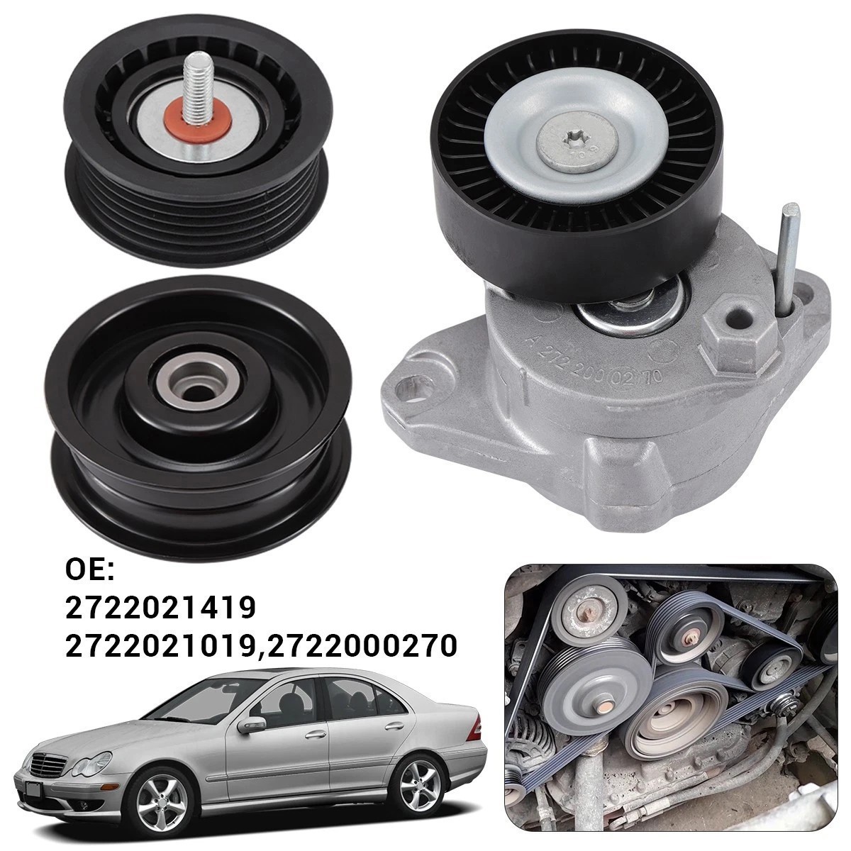 For Mercedes-Benz Engine Drive Belt Tensioner & Idler Pulley Serpentine Belt kit π§ Fuel Injector & Component Kit β For Select Mercedes-Benz Models π§ π Part Numbers Included 2722021419 2722000270 2722021019 6pk2404 π Fitment Compatible with a wide range of Mercedes-Benz models (2006-2011), including: ML-Class : 2008-2009 ML550 (M273.963), 2006-2008 ML350 (M272.967) GL-Class : 2007-2008 GL450 (M273.923), 2008-2010 GL550 (M273.963) SLK-Class : 2006-2008 SLK280 (M272.942), 2009-2010 SLK300/SLK350 (M272.942/969) C-Class : 2006-2007 C230/C280/C350, 2008-2010 C300/C350 (2WD/4M) GLK-Class : 2010 GLK350 (2WD/4M) E-Class : 2010 E350/E550 Coupe/Convertible, 2006-2009 E350/E550 Sedan/Wagon (2WD/4M) CLK-Class : 2006-2008 CLK350, 2007-2009 CLK550 (Coupe/Convertible) CL-Class : 2007-2008 CL550, 2009-2010 CL550 4M CLS-Class : 2007-2010 CLS550 S-Class : 2007-2009 S550 (2WD/4M) SL-Class : 2007-2008 SL550 R-Class : 2006-2009 R350 (2WD/4M) G-Class : 2009 G550 β¨ Key Features Premium Quality : 100% brand new, high-quality components built to meet OEM standards. Direct Replacement : Designed as an exact fit for seamless installation, no modifications required. Warranty : Backed by a 3-year warranty for peace of mind. π¦ What You Get 1 x 2722021419 1 x 2722000270 1 x 2722021019 1 x 6pk2404 π Support & Shipping Fast Shipping : Shipped from California for quick delivery. Customer Service : Contact us first with any issues β communication is key to resolving problems promptly. Replace worn fuel system components with a reliable, direct-fit kit β order today! π