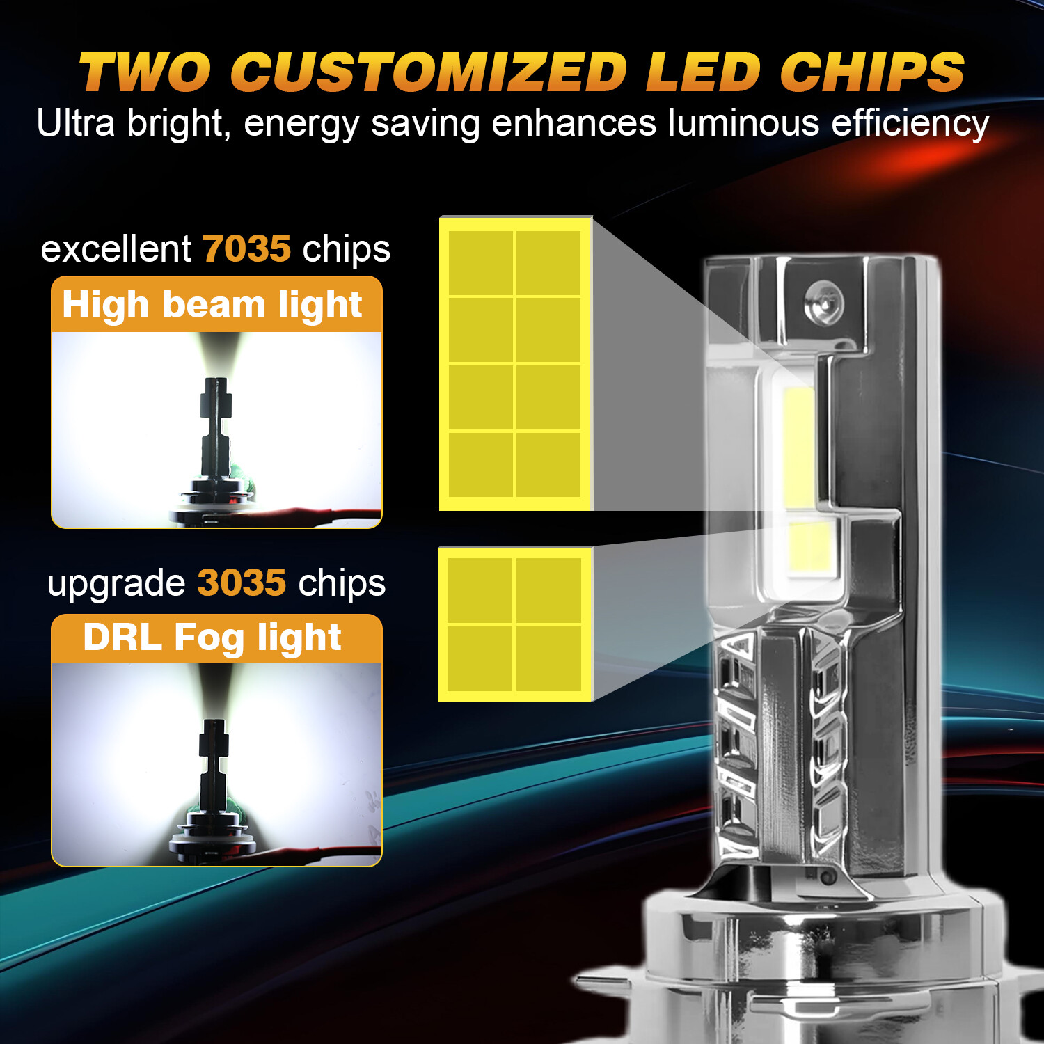 Product Description 6000K Bright White Light: The 6000-6500K bright white light offers superior brightness and a daylight-like glow, which improves visibility on the road and adds a sleek, modern touch to your vehicle’s exterior. Super Bright Output: These LED bulbs produce a super bright light that illuminates the road ahead, increasing safety and reducing eye strain for the driver. They are perfect for use as high beams or Daytime Running Lights (DRL). Long-Lasting Performance: Built to last, these LED bulbs have a long lifespan of up to 50,000 hours, significantly outlasting traditional halogen bulbs. Say goodbye to frequent bulb replacements and enjoy reliable performance for years to come. Energy Efficient: The H15 LED bulbs are energy-efficient, consuming far less power than halogen bulbs, which means reduced load on your vehicle's electrical system and better fuel economy. Easy Installation: Designed to be plug-and-play, these bulbs are easy to install without the need for complex wiring or modifications. Simply replace your existing halogen bulbs with these high-performance LED bulbs. Description: Quayub is a leading LED lighting brand around the world, providing first-class motorcycle/car lights for our customers. For a decade, our products have reached more than 100 countries, serving nearly 1,000,000 customers. Our overseas warehouses are spread across the globe to make fast delivery possible. Main Features: Beam available: H15 main beam with DRL mode. Luminous flux: High Beam: 20000lm ,Low Beam 16000lm Power: High Beam: 75w ,Low Beam :50w Voltage: DC 12V Installation: Plug and Play Color Temperature: 6000-6500K White Operating Temperature: -40℃~+80℃ Light source: With 12 Pieces Upgraded 7035+3535 LED chips. Integrated aluminum body design, so easy for heat dissipation. 12,000RPM Turbo Fan Design No interference on Car Radio. No any delay to light up. Super long service life 50,000 hours. Packing included: 2x H15 Led Headlight Bulbs (New and old packaging will be shipped randomly) On Jun 11, 2025 at 04:13:53 PDT, seller added the following information:
