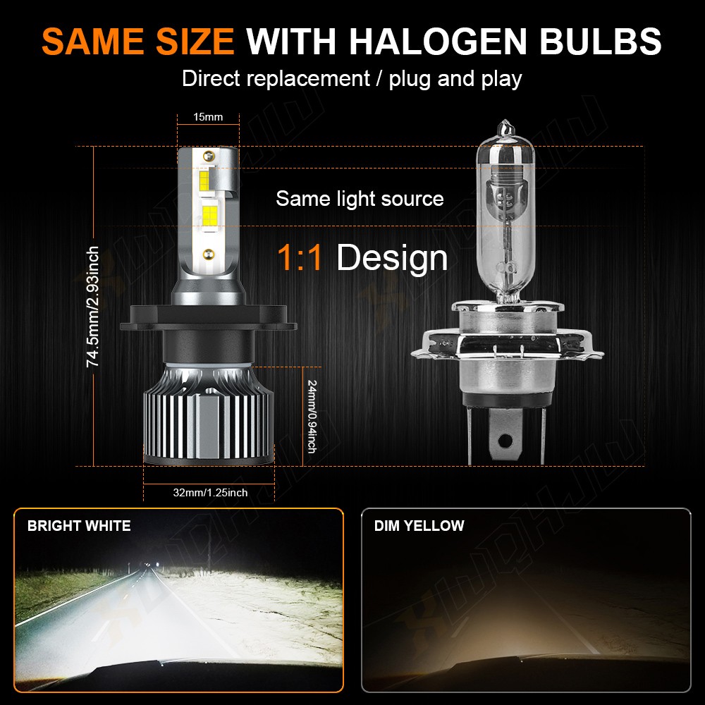 LED Headlight Bulb Specifications: ---Model:HB2/9003/H4 ---light Source Model: LED Chip,2-Side Leds,Super Bright ---Power: 80W/Set ---Lumen: 10000LM/Set ---Operating voltage:DC9-30V ---Beam Type:High beam & Low Beam ---Material: Aluminum PCB and PA66+30% GF Plastic ---Beam Angle:360° ---Color Temperature: 6000K-6500K Cool White ---Lifespan:over 50000h ---Working Temperature: -40-+80 Centigrade ---Waterproof rate: IP 67 ---Plug for this listing: HB2/9003/H4 Plug High Low Beam LED Headlight Bulbs Kit ---Connector Type:Plug and Play ---Application: LED Headlights Headlamp Lamp Bulbs High or Low Beam Features: --- High-power chips , ultra-thin board shape design makes the installation and fit better, the illumination is more uniform, and avoids the disadvantages of poor illumination width caused by the point light source; Our Lights suitable for use with 12-30V voltage. Our Lights has the characteristics of light diffusivity, wide-angle illumination and high lumen; ---The LED has high luminous purity, no need for lampshade filtering, and the light wavelength error is within 5 nanometers ---There is no delay when the LED lights up, while the traditional tungsten bulb has a delay of 0.3 seconds. ---LED has low power consumption . When it reaches the same brightness of traditional bulbs, it consumes only 6% of traditional bulbs, and it also saves electricity and fuel! ---It has a long life , its filament-free structure does not generate heat, and it can be used for more than 6 years under normal conditions ---LED car lights can make the vehicle control circuit not easy to oxidize, with a maximum load current of 0.1A. LED Headlight Advantages: ---LED lamps are more energy and power than conventional halogen lamps. The brightness is close to the xenon lamp, but the LED lights are illuminated without delay to enhance road safety. Instantly start without strong current impact, improve battery life by more than 30%. --- Fast cooling , using the most advanced, heat-dissipating structural design. The power driver adopts a wide voltage constant current mode which has a simple structure, so that the automobile can flexibly cope with various voltage unstable conditions, and has achieved the purpose of less component damage. Compared to HID ballast maintenance, The repair probability is very low which is less than 80%. --- Low heating temperature , The working temperature of helium can reach 800°-1000° ---LED headlight has a simple structure, and the parts are less than the xenon lamp, which is lower than the xenon lamp failure rate! ---Car LED headlight color temperature are balancing. Xenon bulbs are clear in the same color, about 6000K. LED Fog Light Bulb Specifications: Color: Super Bright 6000K Xenon white Bulb socket: H11/H8/H16 Each bulbs equipped with 16 pieces LED chips 360 degrees illumination Heat resistant, prevent overheat problem Operating Voltage: 12V DC Wattage: 18W Actual Lumen: 2600 lm Voltage: DC 9-36V (fit 12V, 24V vehicles) Heat resistant, prevent overheat problem Easy installation, just plug and play, no polarity problem Much longer work life than halogen lights, approximately up to 60,000 hours Help&Contact: ---Question 1: Will these bulbs fit my vehicle? Answer: These bulbs do fit all vehicles in Compatibility. These bulbs do fit, as long as your original bulb size is HB2/9003/H4. even if your vehicle does not show up on the compatibility. ---Question 2: Warning About Polarity ! Neither bulb lighting up? Answer: LED Bulbs are polarity sensitive. Before installation, Please simply plugging the LED bulbs into your vehicle socket to verify the polarity on your vehicle. If LED bulbs turn on, please proceed to install. Packed Include: 2 x HB2/9003/H4 LED Headlights Bulbs 2 x H11 LED Fog Light Bulbs On Sep 15, 2025 at 22:16:24 PDT, seller added the following information:
